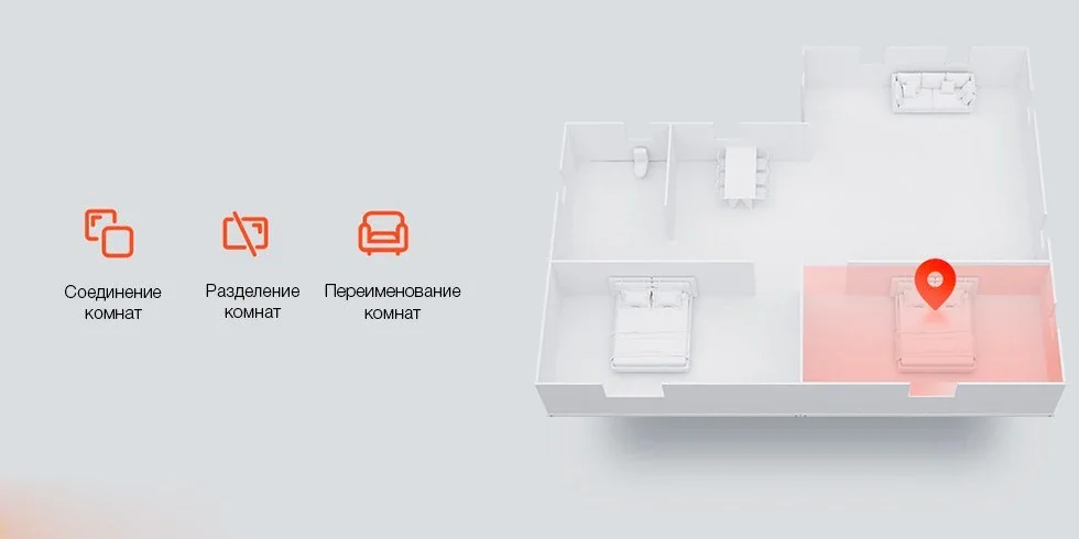 После первой уборки пылесос автоматически составляет карту помещения и разделяет его на комнаты или области. Вы можете самостоятельно объединить, разделить или переименовать их для удобной работы и передачи указаний пылесосу.