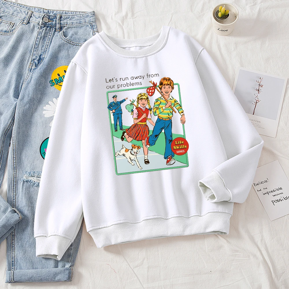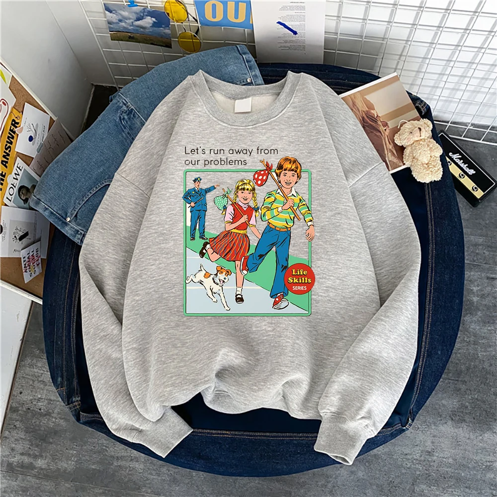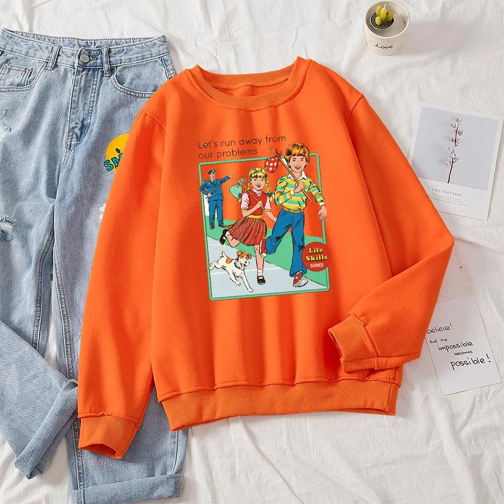 Женская толстовка с капюшоном в стиле харадзюку с комиксами ужасов Let's Run Away Art, высокое качество, винтажная повседневная толстовка, осенний теплый свободный спортивный костюм