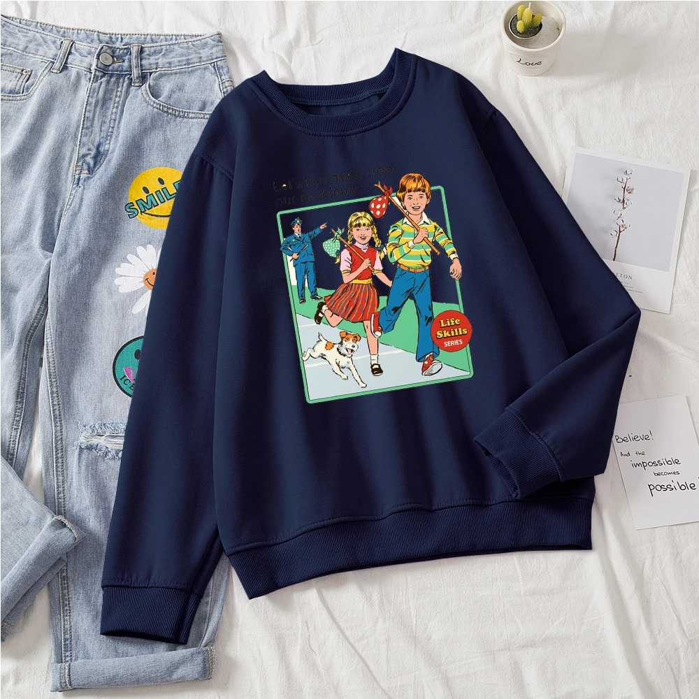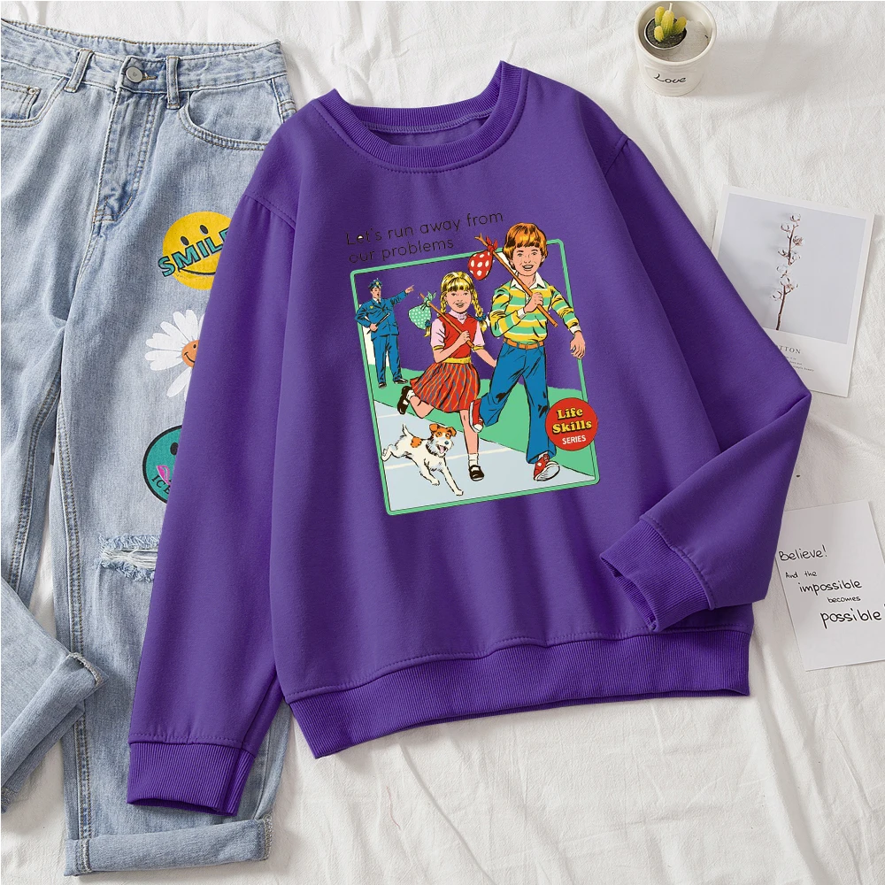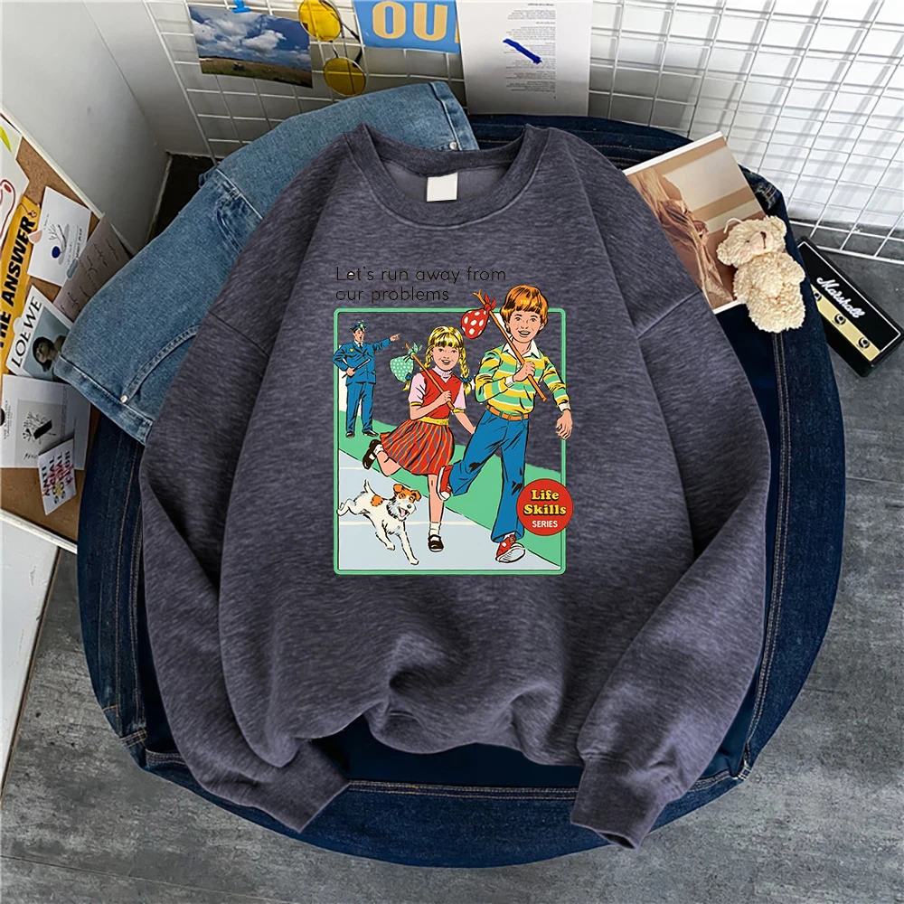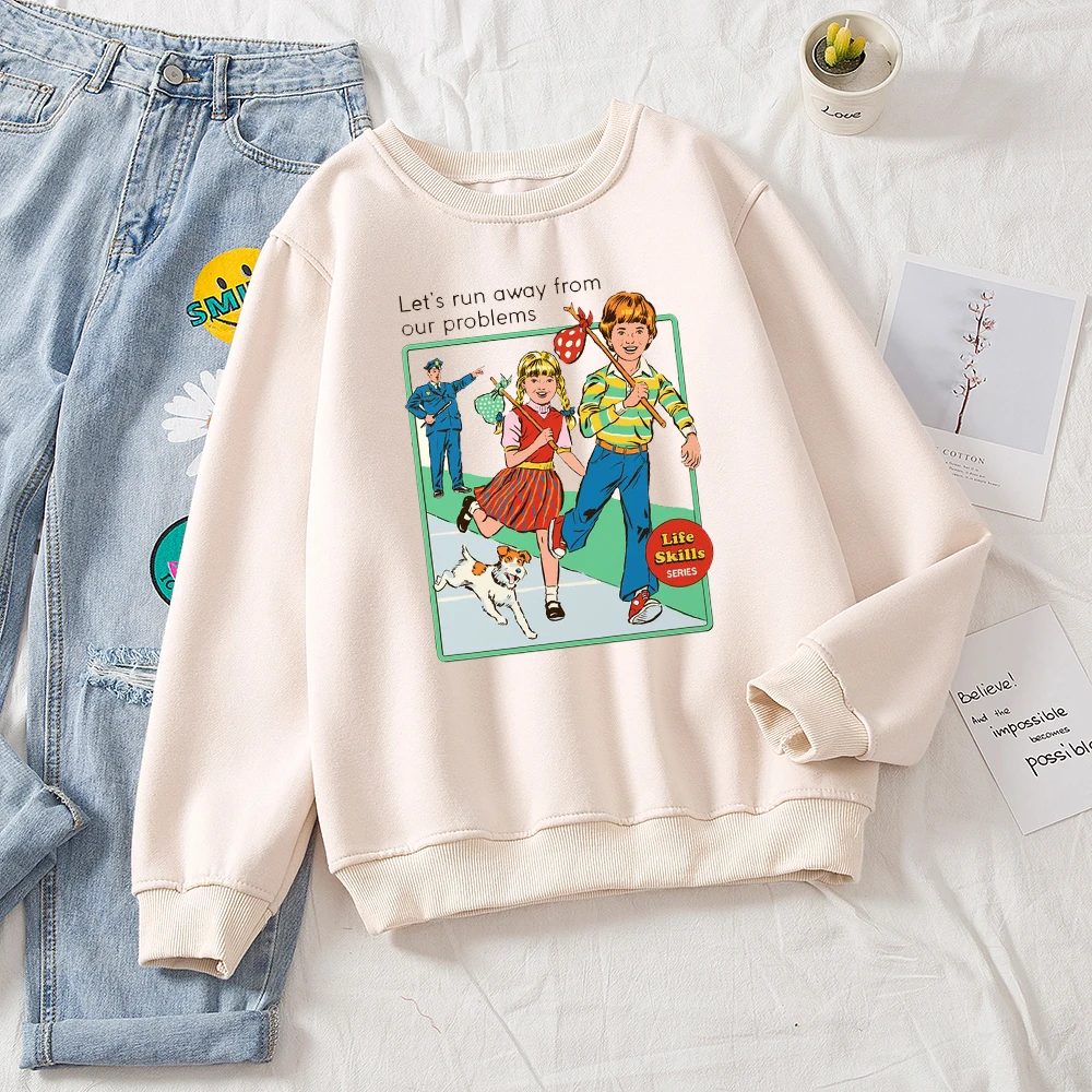 Женская толстовка с капюшоном в стиле харадзюку с комиксами ужасов Let's Run Away Art, высокое качество, винтажная повседневная толстовка, осенний теплый свободный спортивный костюм