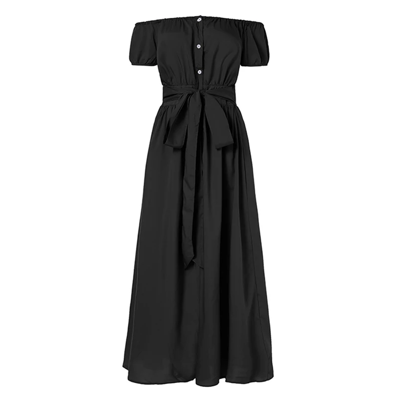 Celmia сексуальное Однотонное Платье макси с открытыми плечами 2021 летнее женское богемное платье с разрезом и пуговицами повседневное длинное платье с поясом
