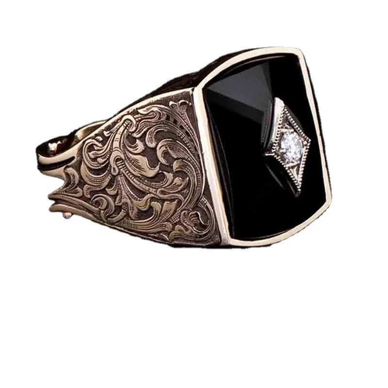 Оптовая продажа, модное мужское кольцо с классическим узором и инкрустированным цирконом, модные праздничные кольца с эмалью и ромбом, ювелирные изделия, аксессуары для рук