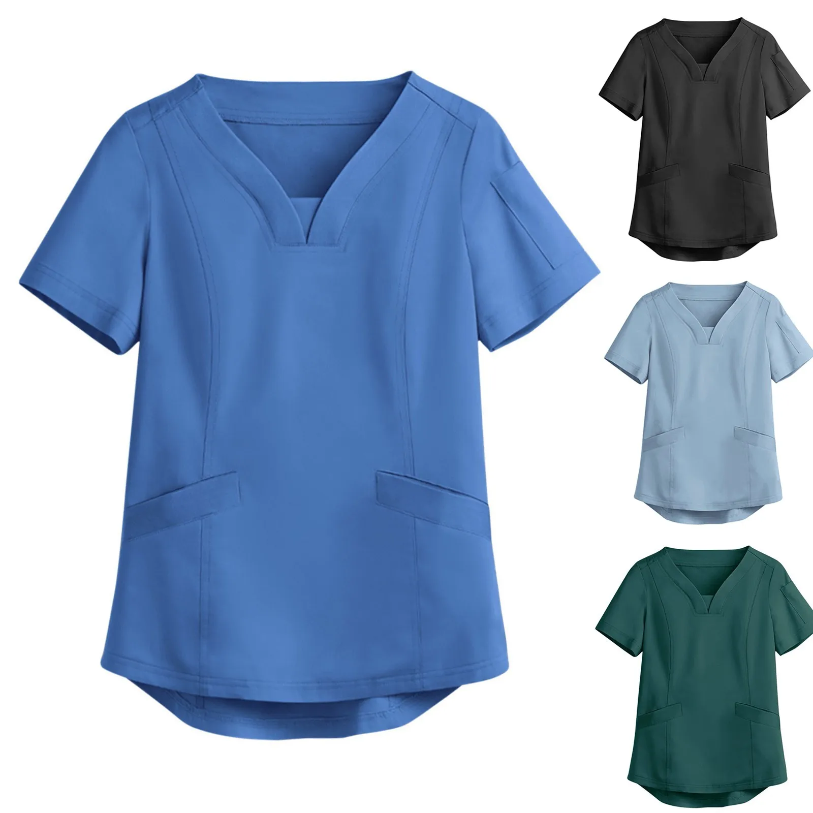 Женская униформа медсестры скрабы Топы с коротким рукавом с V-образным вырезом карманы работники ухода футболки Блузы однотонные униформы для медсестер Mujer