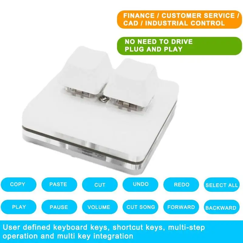 Настраиваемая мини-клавиатура, 2 клавиши, копировать и вставлять аудио, механическая клавиатура, Игровая USB-клавиатура для WIN8 10 или O1I1