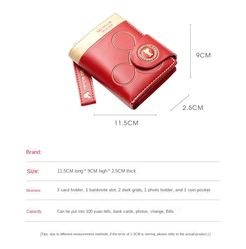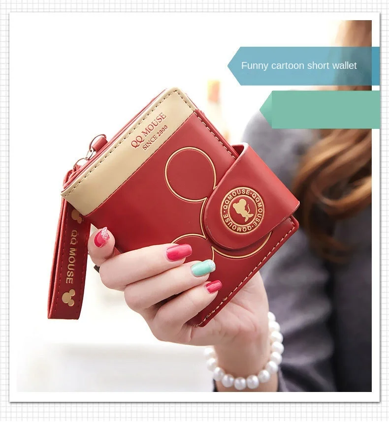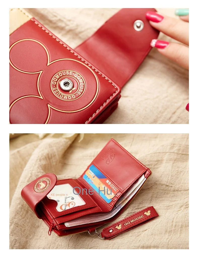 Новинка 2022, Женский кошелек Disney с Микки, короткий складной кошелек из искусственной кожи с несколькими отделениями для карт, вместительный кошелек высокого качества