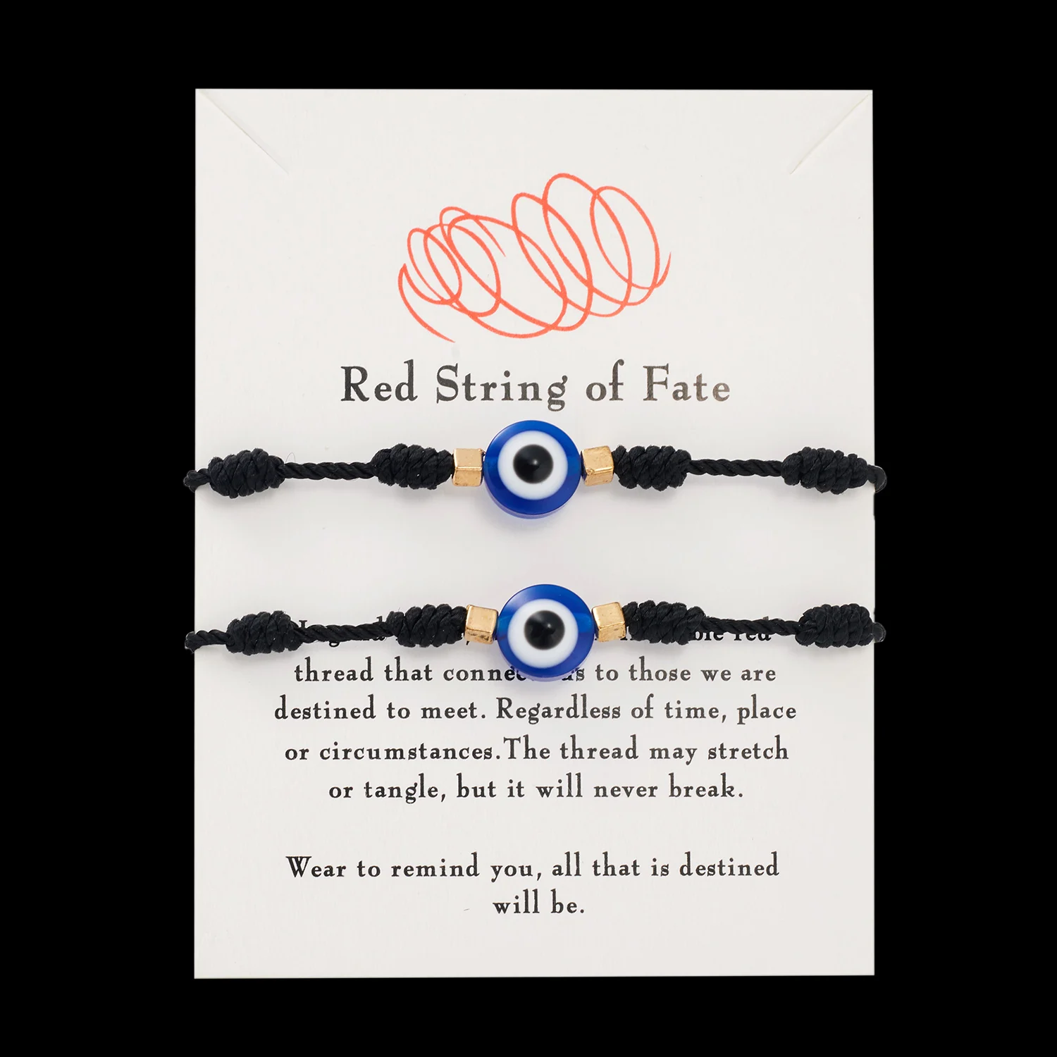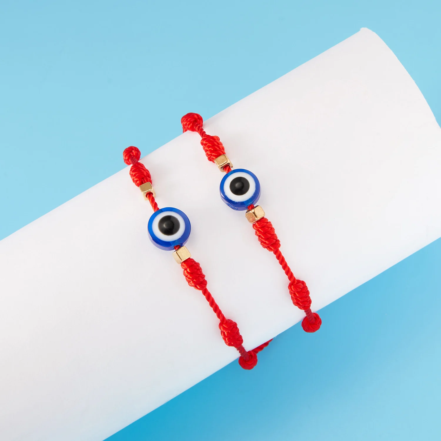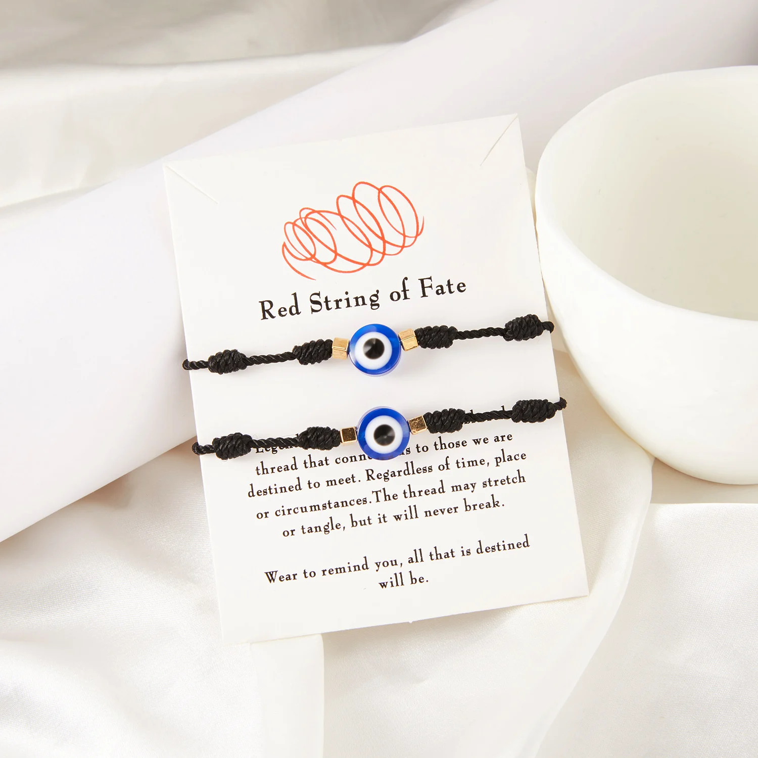 Веревочные браслеты для женщин, мужчин, черные и красные, 7 узлов, синие глаза от сглаза, счастливое пожелание, картон ручной работы, регулируемый, Парные браслеты