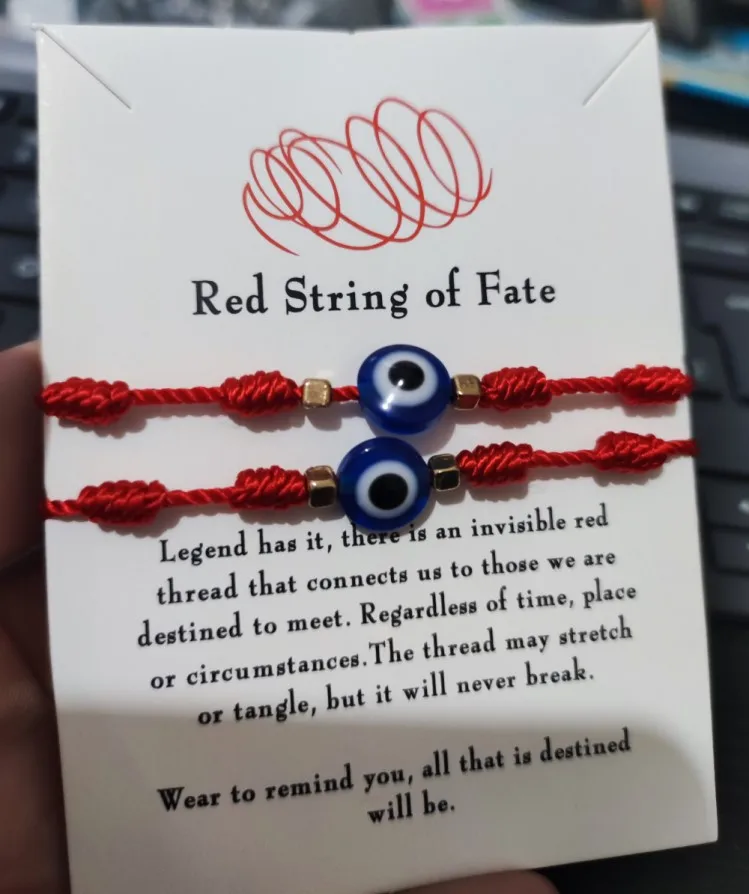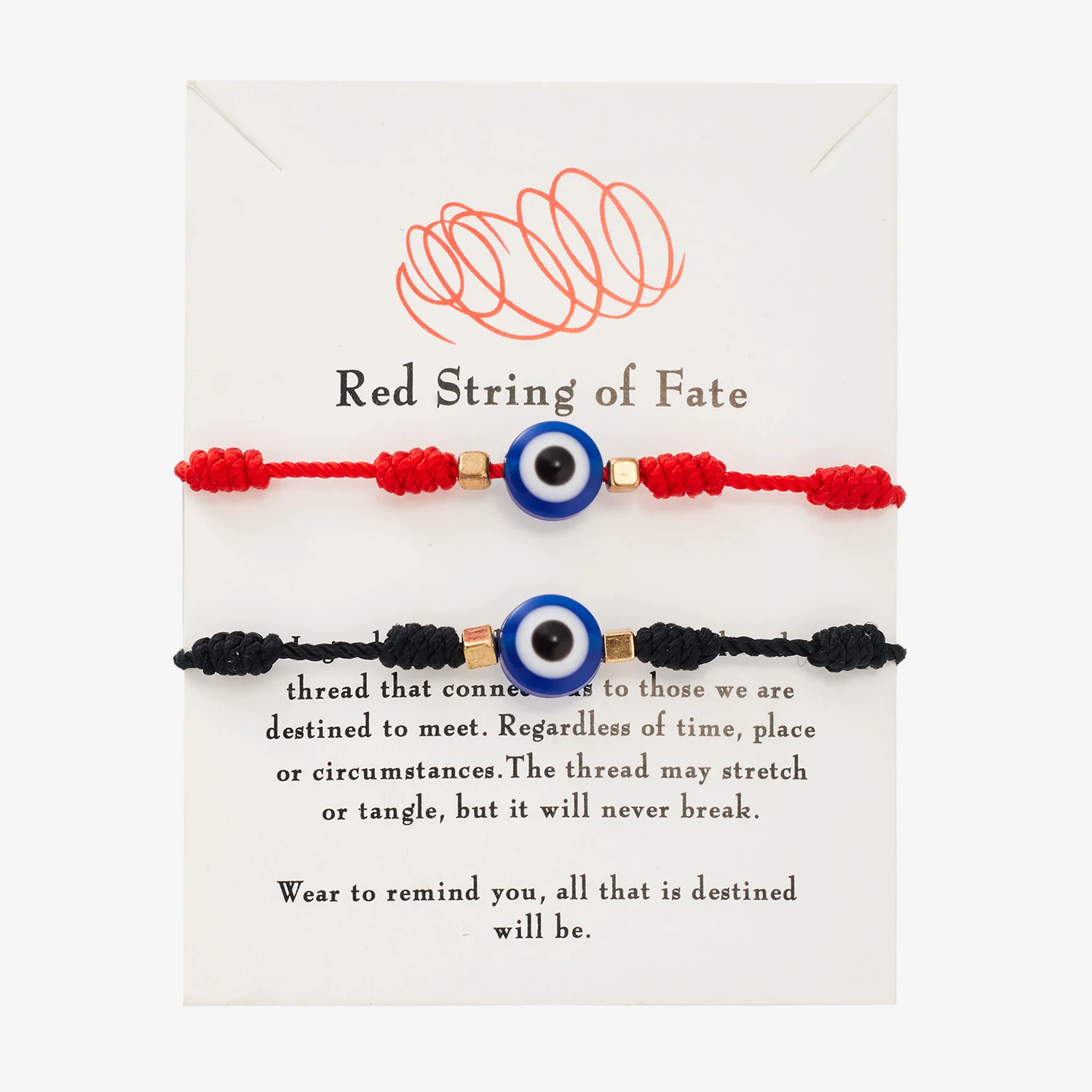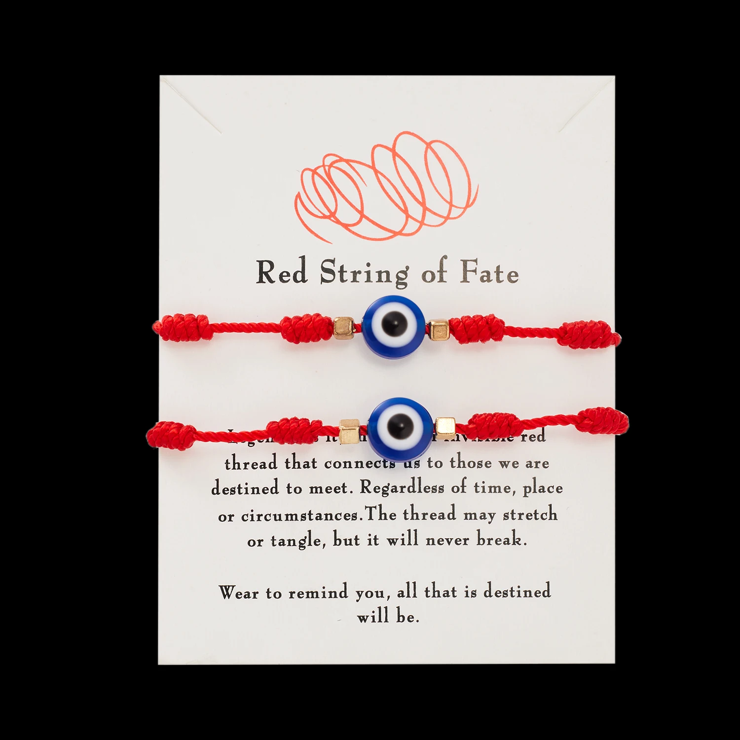 Веревочные браслеты для женщин, мужчин, черные и красные, 7 узлов, синие глаза от сглаза, счастливое пожелание, картон ручной работы, регулируемый, Парные браслеты