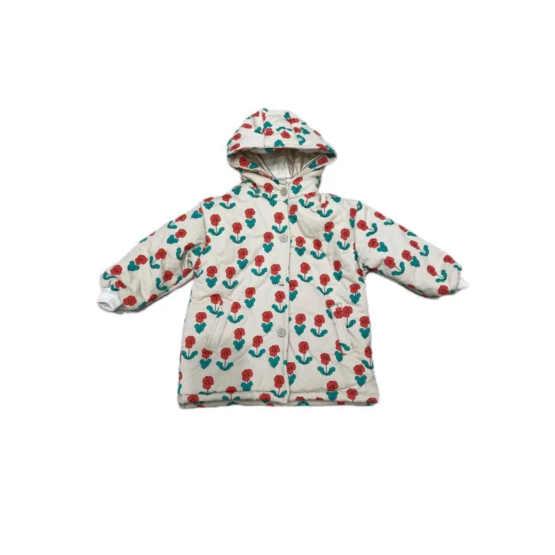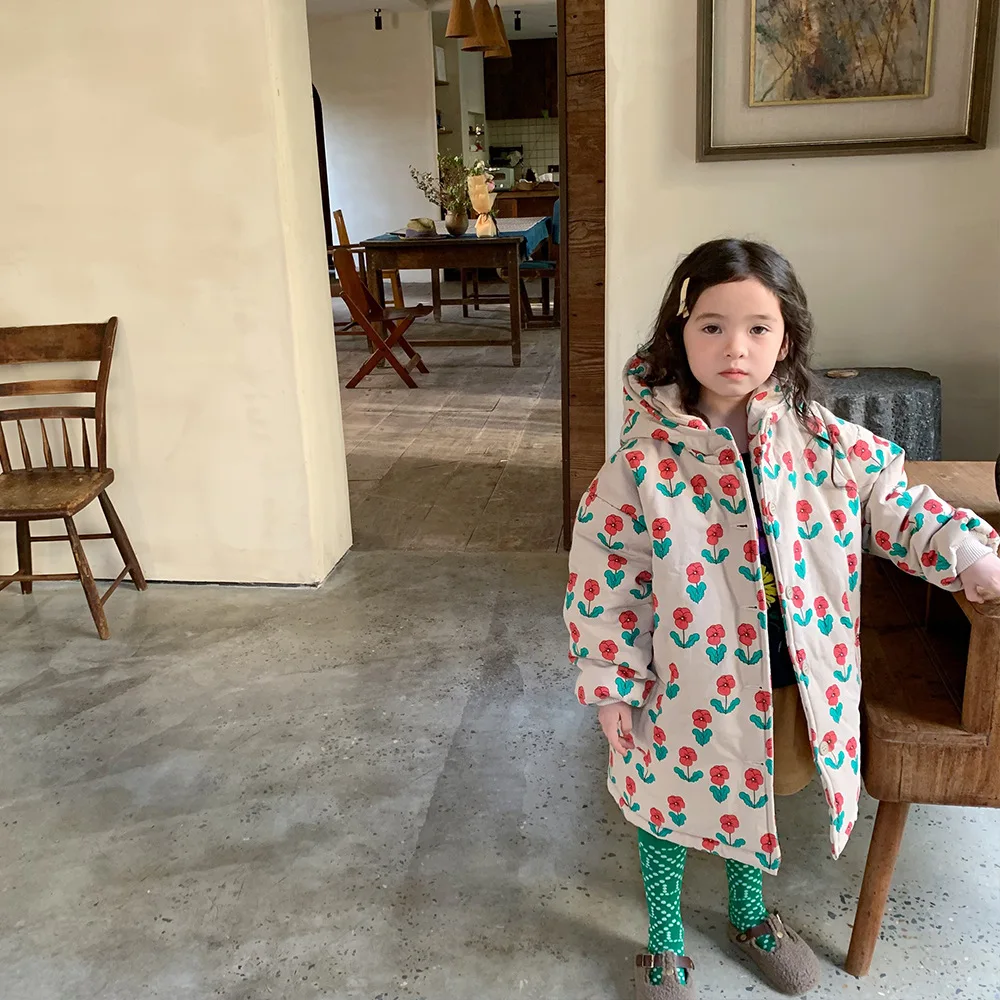 Новое поступление 2022, весенне-зимнее пальто с длинным рукавом и цветочным принтом для девочек, детские куртки, детская куртка