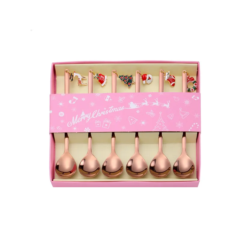 6 шт., новогодние чайные ложки из нержавеющей стали