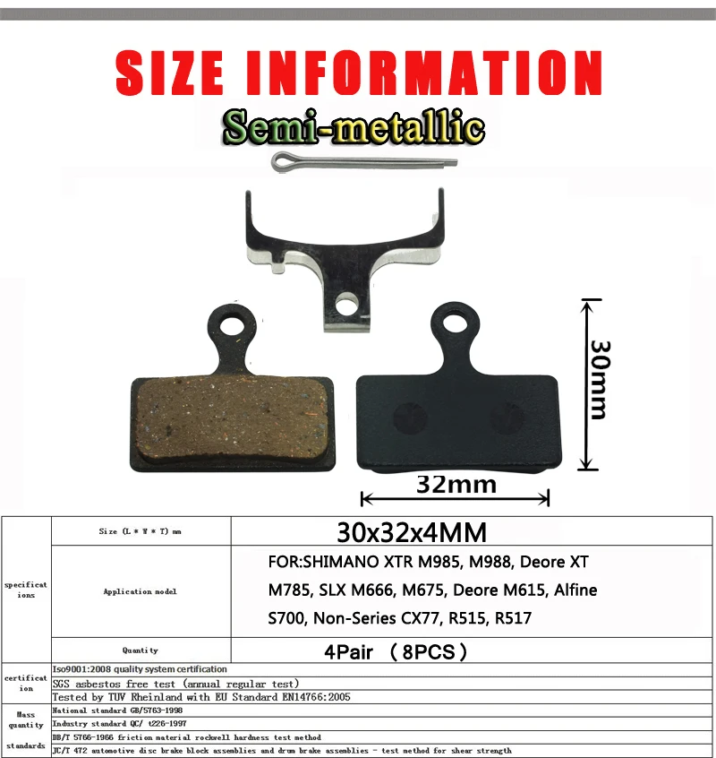 4 пары полуметаллических дисковых тормозов для велосипеда SHIMANO S...