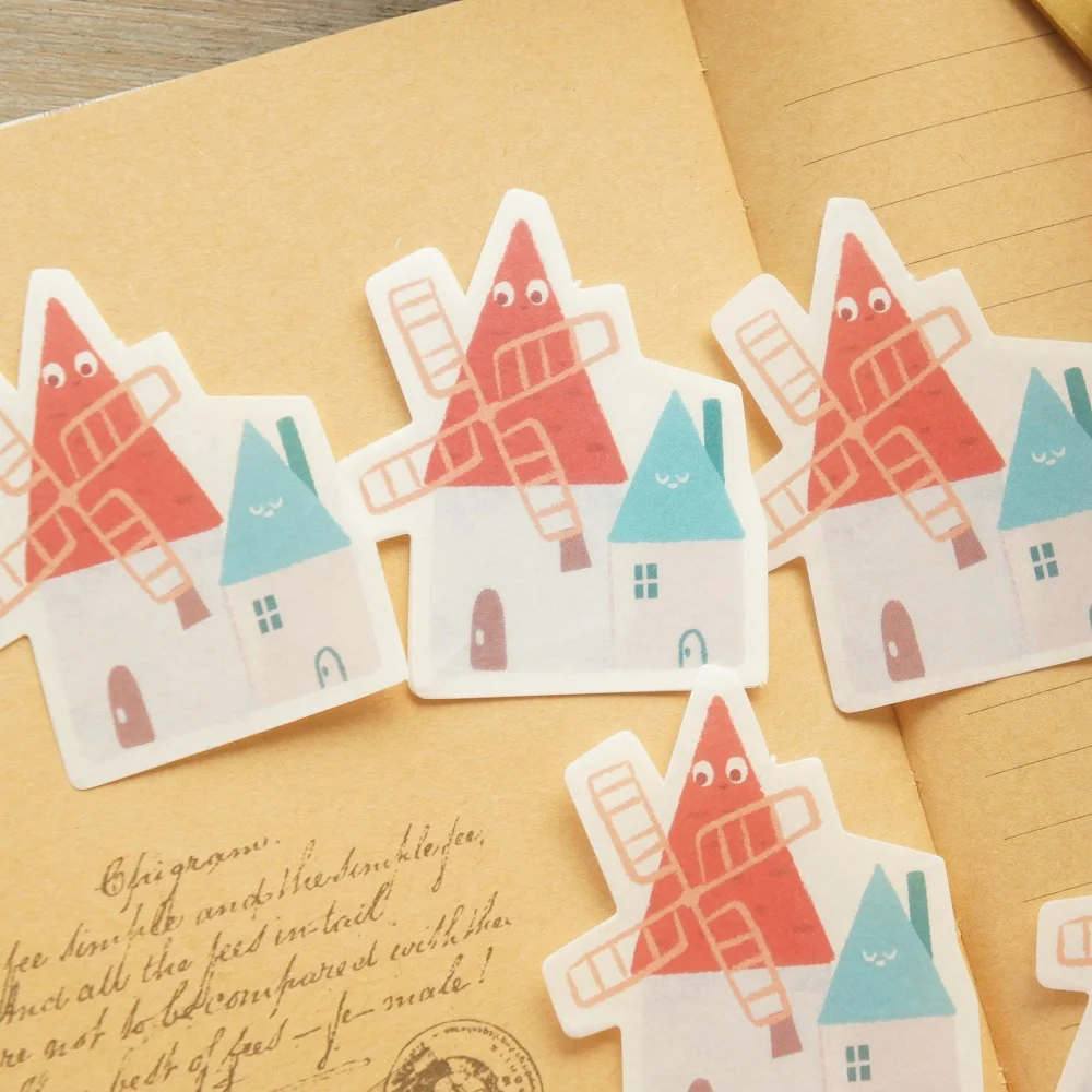 28 шт., бумажные стикеры в виде мельницы в сказочной деревне