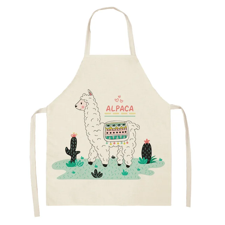Женский фартук-нагрудник из хлопка и льна, с принтом ламы, альпаки, кактуса