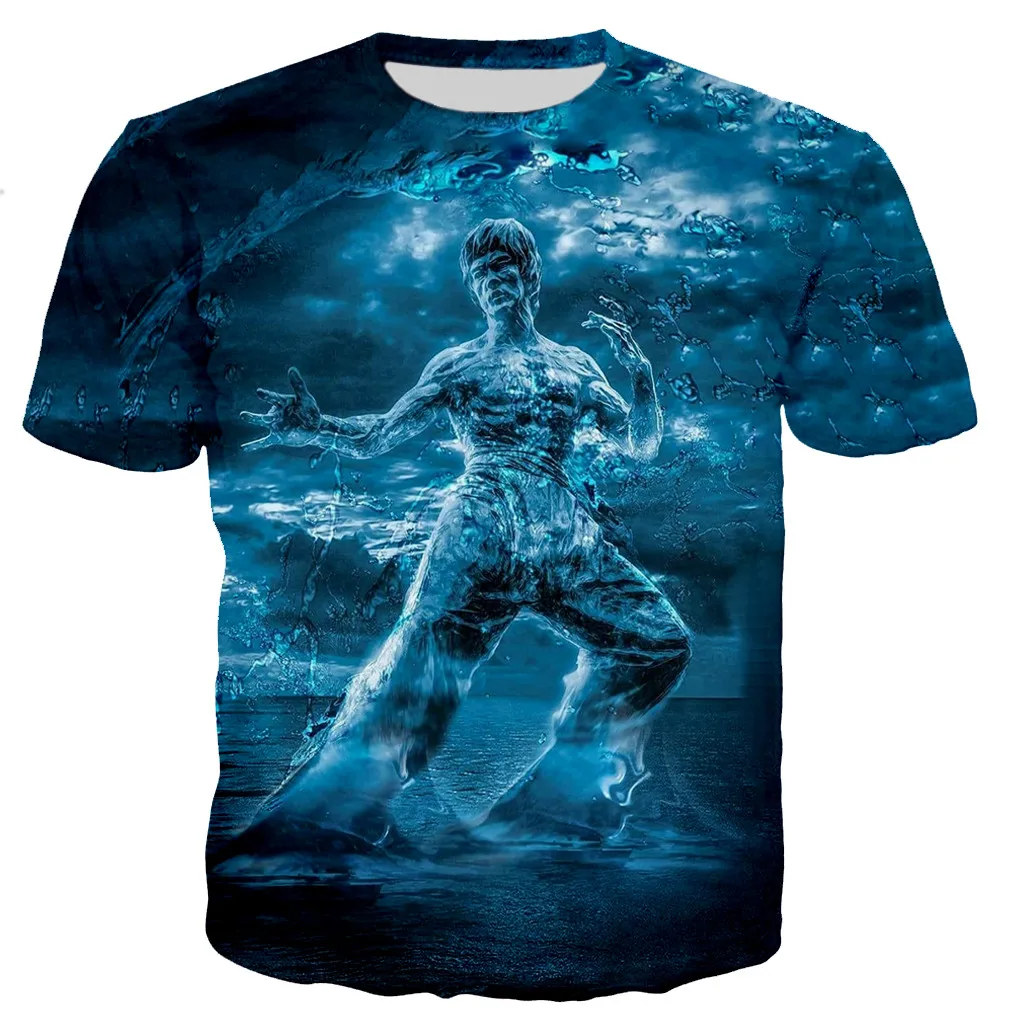 Новинка лета 2021, мужская и женская футболка с 3D принтом Брюса Ли...