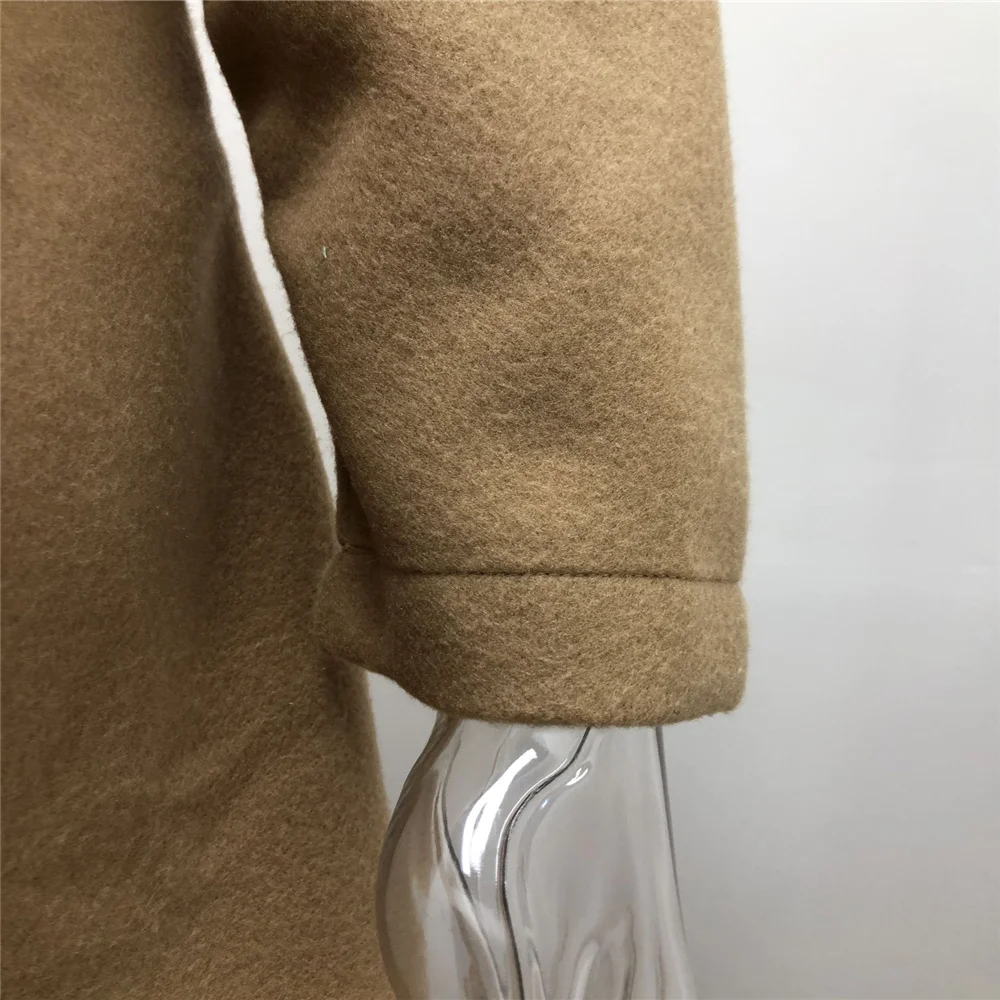 Длинные женские куртки с открытым стежком, модное шерстяное пальто ...