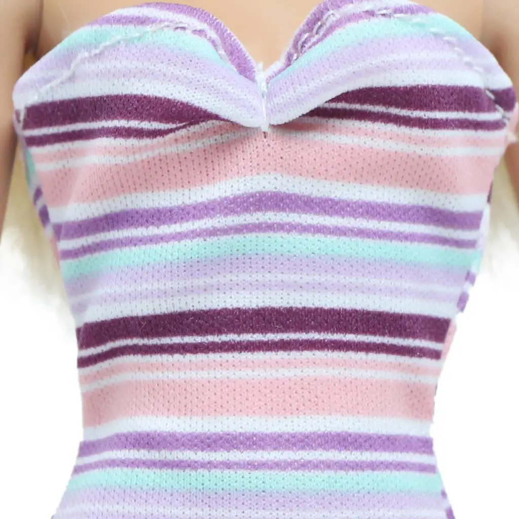 Новейшее платье для куклы BJDBUS, фиолетовое Полосатое платье рыбий хвост, наряд для вечеринки, газовая юбка принцессы, одежда для Барби