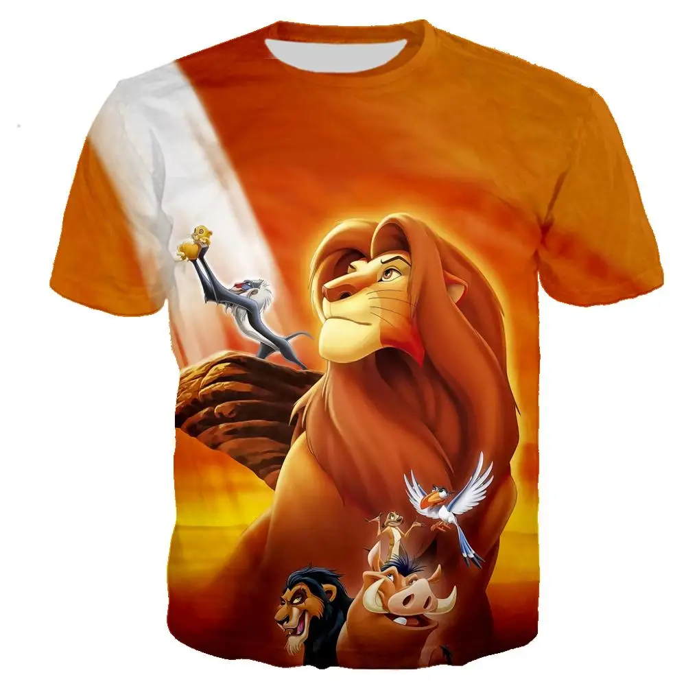 Футболка с мультяшным аниме Король Лев для мужчин и женщин, с 3d принтом, с круглым вырезом, повседневная ностальгическая одежда в стиле хип-хоп для мальчиков, мультяшный Топ
