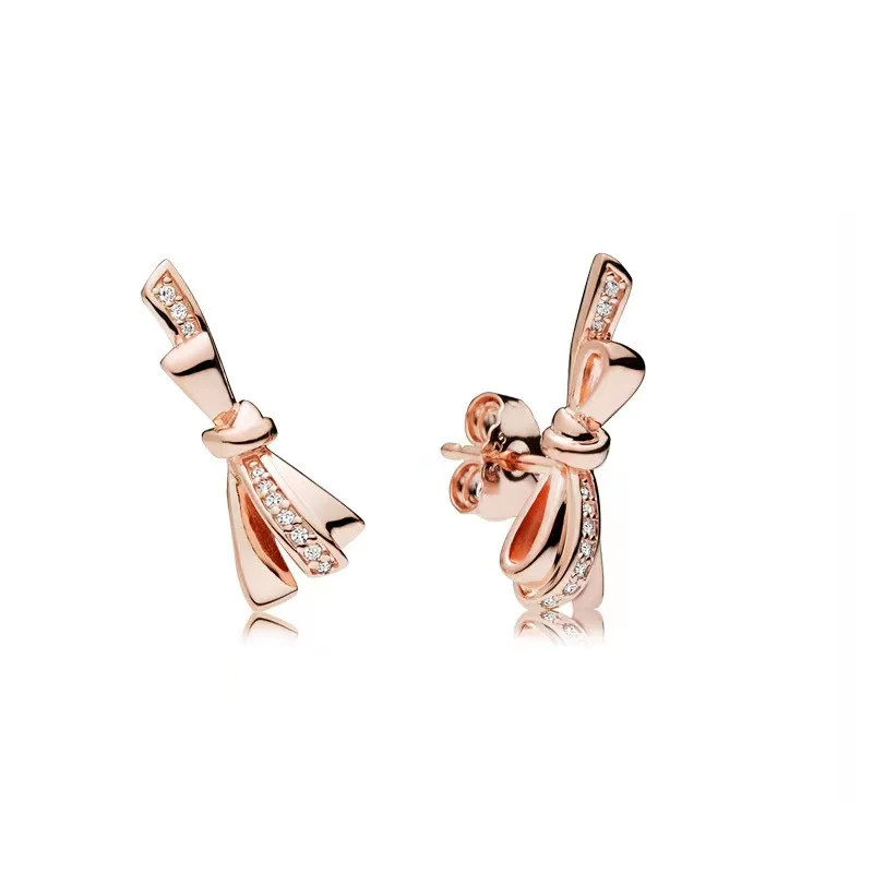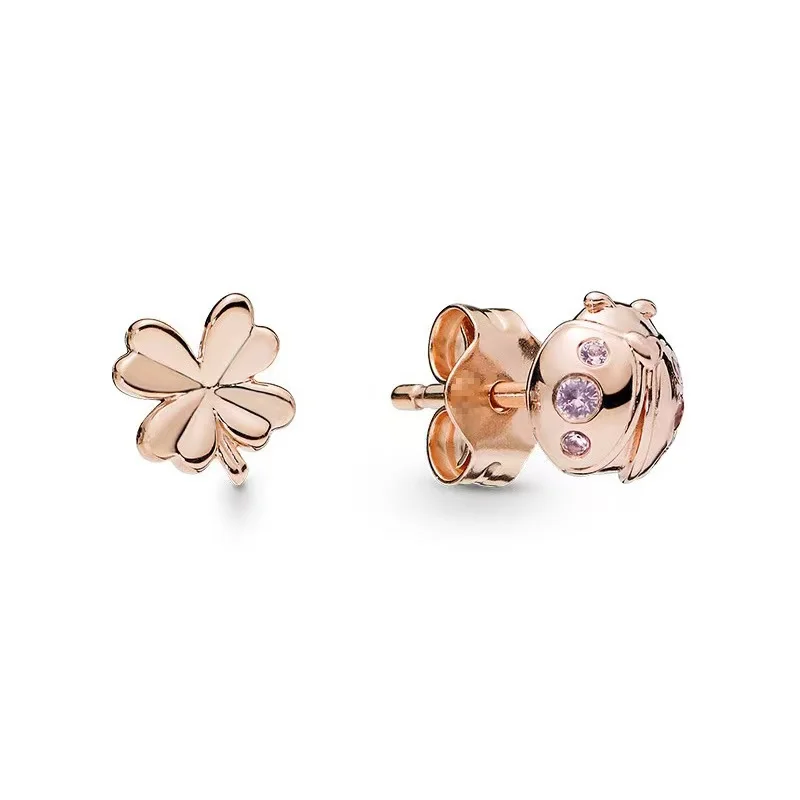 Серьги-гвоздики из серебра 100% пробы с подлинными блестящими розов...