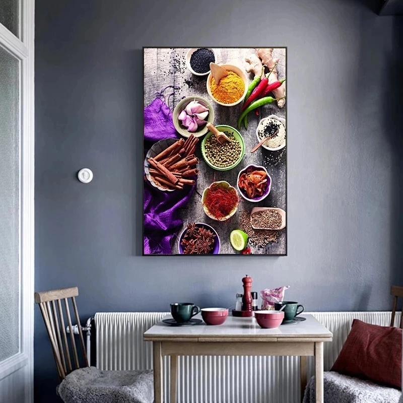 Настенная картина для овощей, кухни, на холсте, зерна, специи, плакаты и принты, Настенная картина, украшение для дома, декор для комнаты, кухни