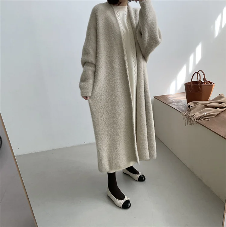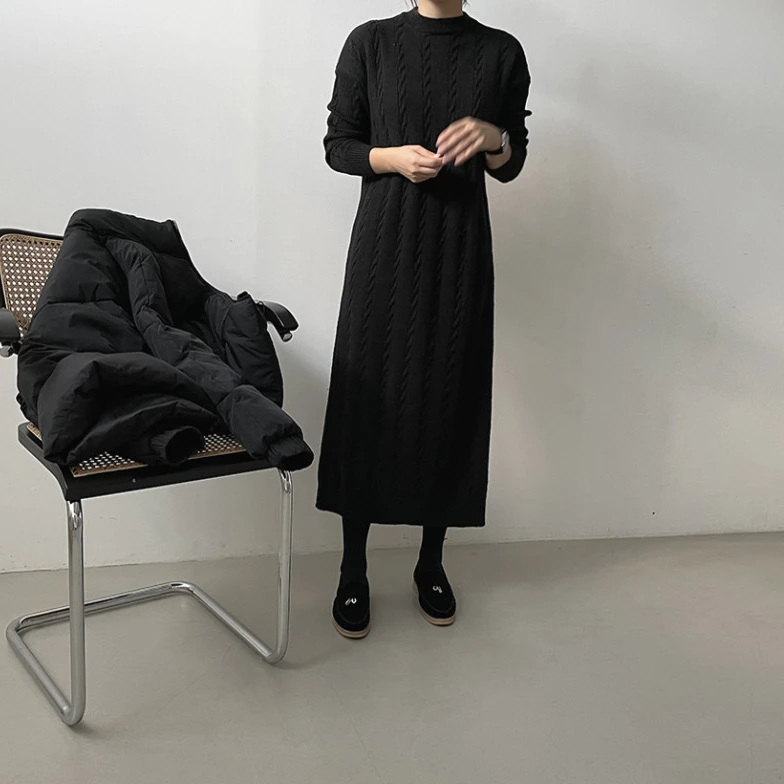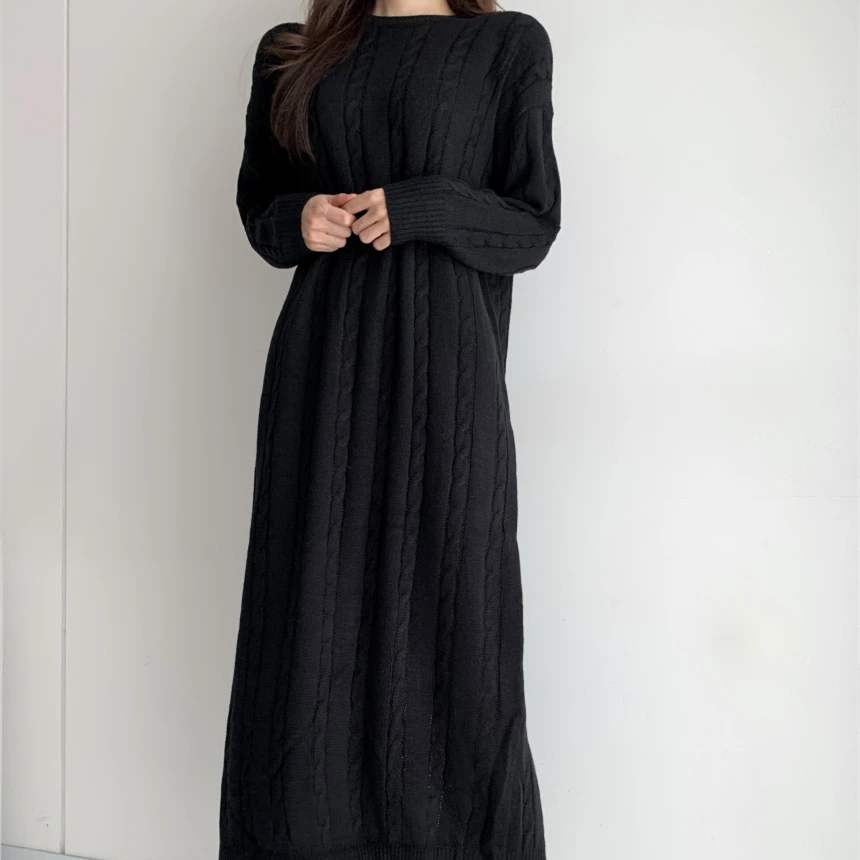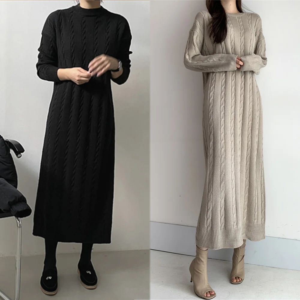 Плотное теплое вязаное женское однотонное Повседневное платье-свитер 2021, женские корейские зимние платья-джемперы, новинка, свободное платье с круглым вырезом