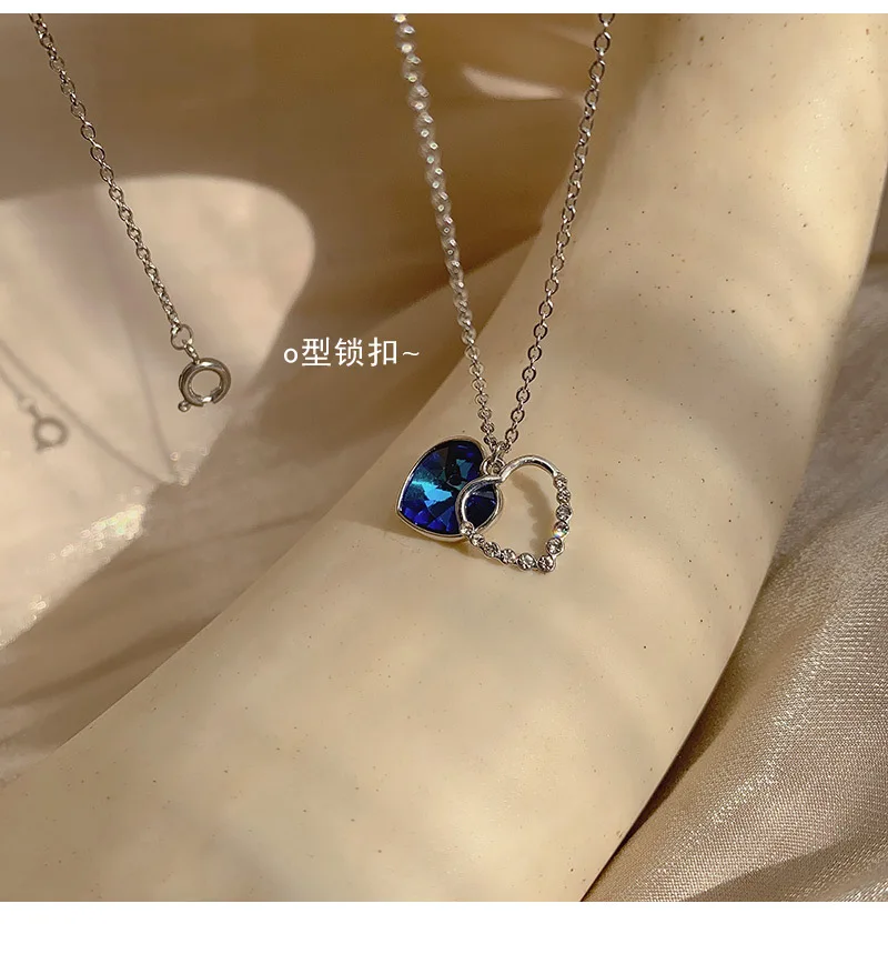 Цепочка на шею Женская, дизайнерская, с кулоном в виде сердца цвета синего океана, корейская бижутерия