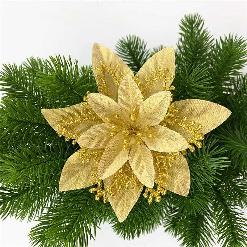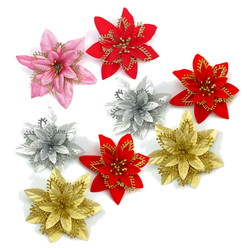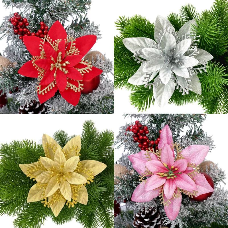 Блестящие Искусственные Рождественские цветы, искусственные цветы, ...