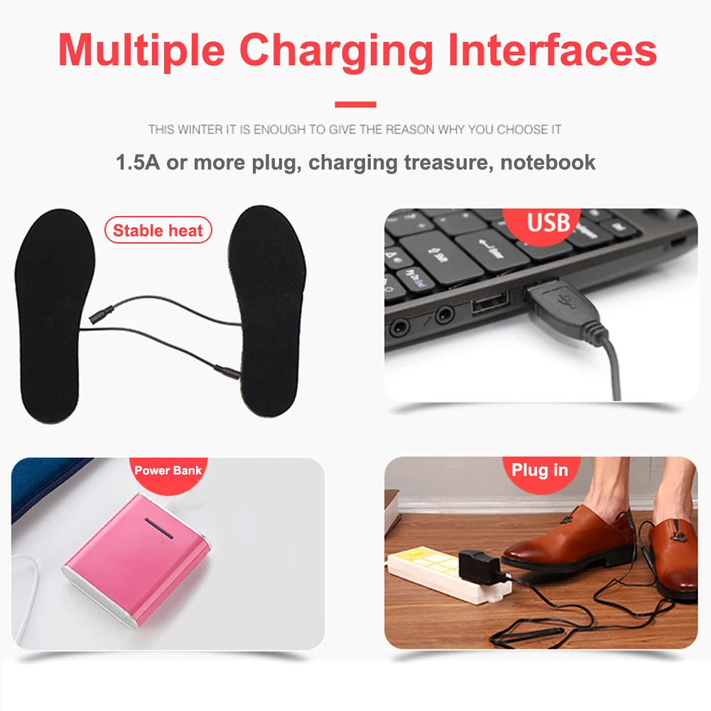 Стельки для кроссовок с подогревом USB, теплые зимние теплые стельки для занятий спортом на открытом воздухе, теплые аксессуары