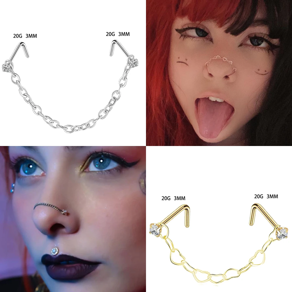Новая Двойная Цепочка для пирсинга в ноздре, серьги из нержавеющей ...