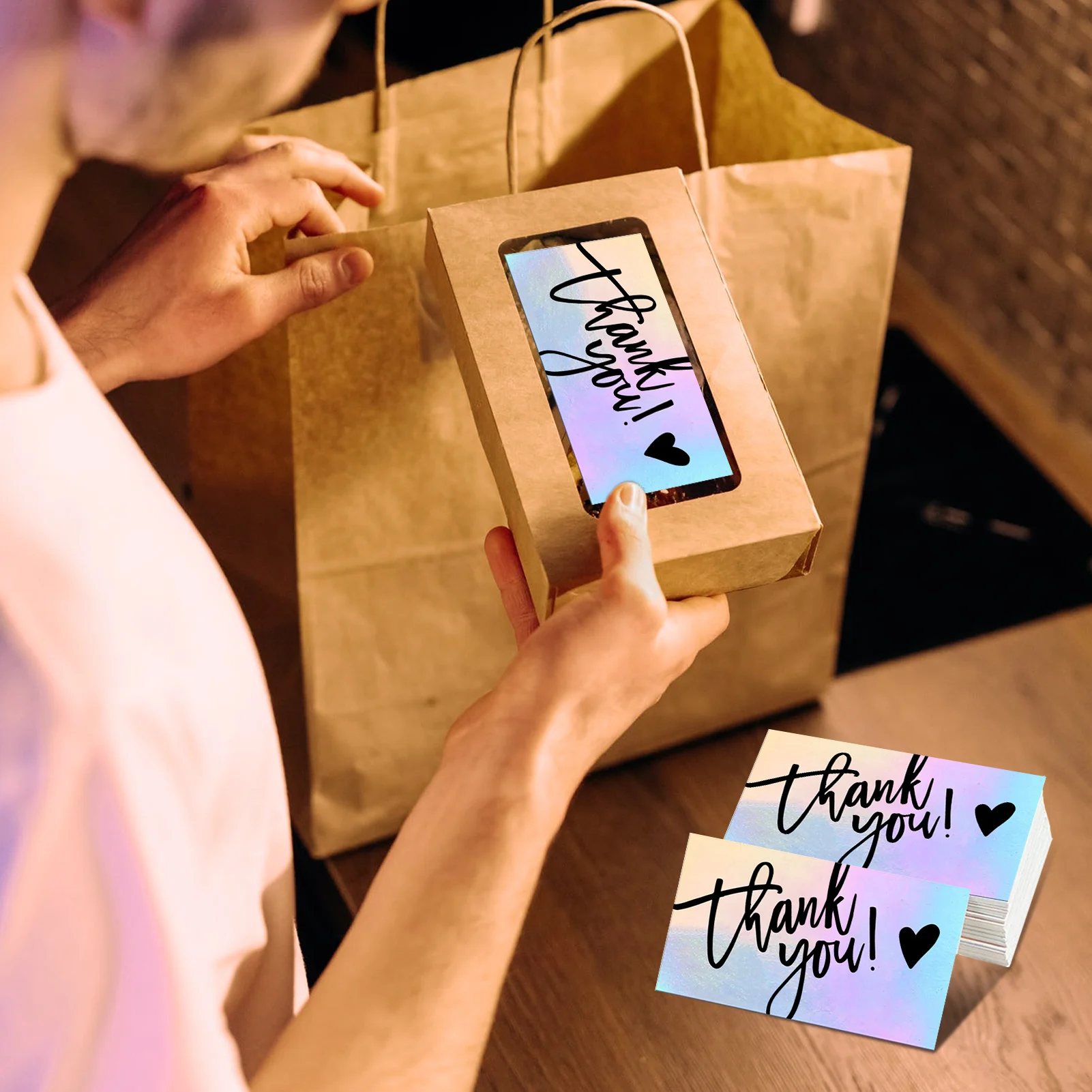 Красочная Лазерная поздравительная открытка, 50 шт., спасибо за ваш заказ, украшение ручной работы для упаковки подарков, спасибо