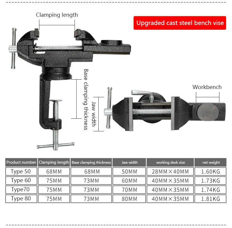 Тиски, многофункциональные настольные тиски с вращающейся на 360 основой, настольные тиски, настольные винтовые плоскогубцы, экономные инструменты