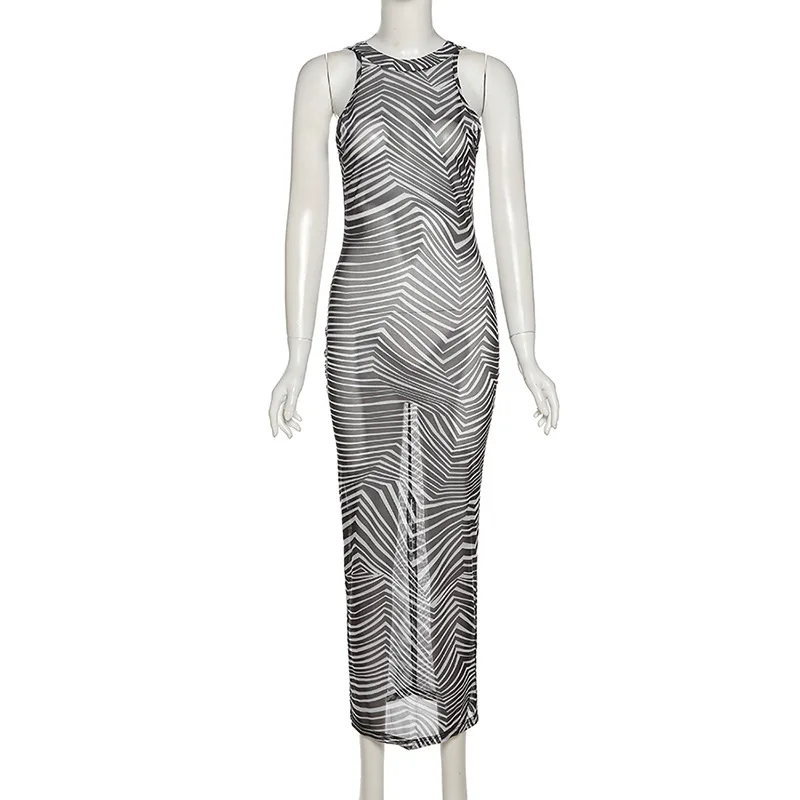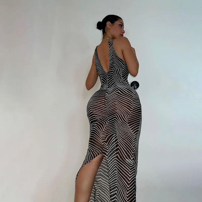Женское Сетчатое платье Hawthaw, длинное облегающее платье в полоск...
