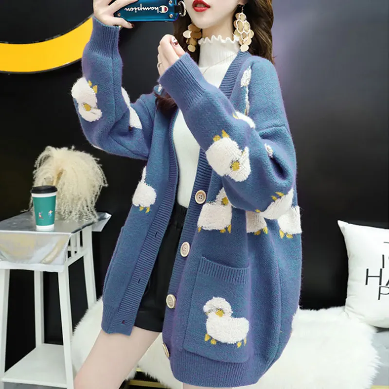 Плотный свитер Neploe, пальто, Женский вязаный кардиган с мультяшны...