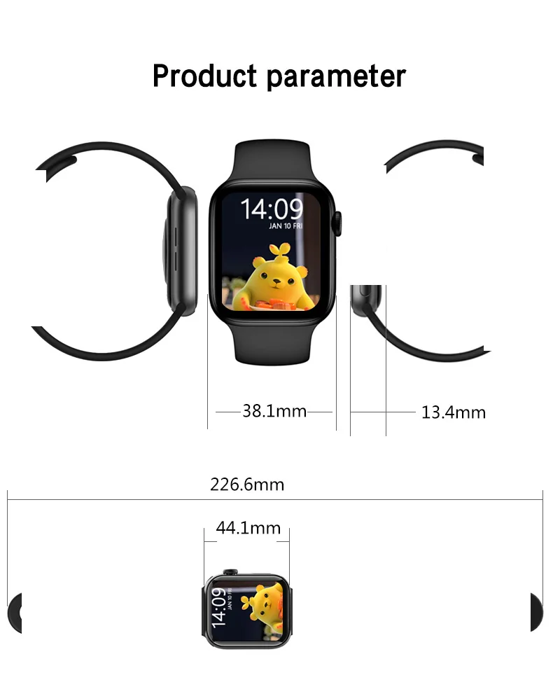 Чипсет: MTK-2502CПриложение: RDFitСовместимая система: «Android 5,0 и выше; IOS9.0 и выше»Размер экрана: 1,75 дюймаРазрешение: IPS 320*385Тип касания: Полный сенсорный экранBT:BT 3,0/4,0G-сенсор: SC7A20Тип: литий-полимерный аккумуляторЕмкость: 3,7 в/180 мАчСпособ зарядки: Беспроводная зарядкаУровень водонепроницаемости: IP67 водонепроницаемыйВремя зарядки: 1,5 ч