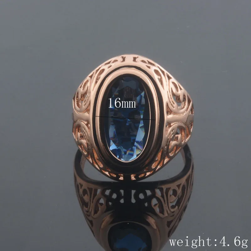 1 шт. 16 мм синий камень для женщин и мужчин 585 розовое золото цвет свадебные украшения большой размер