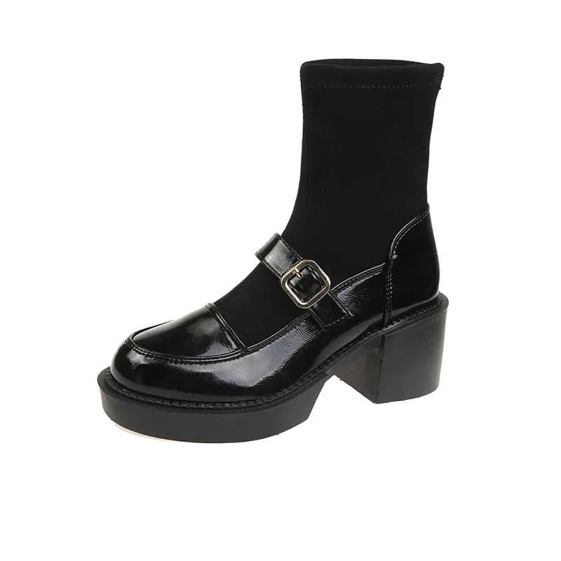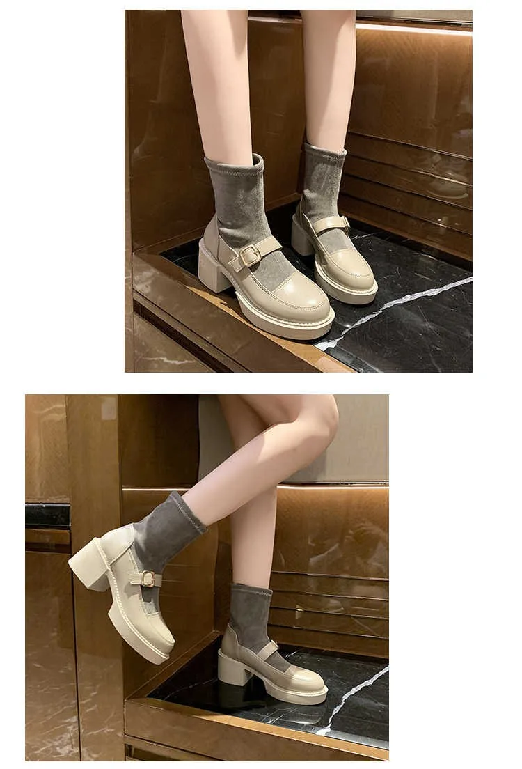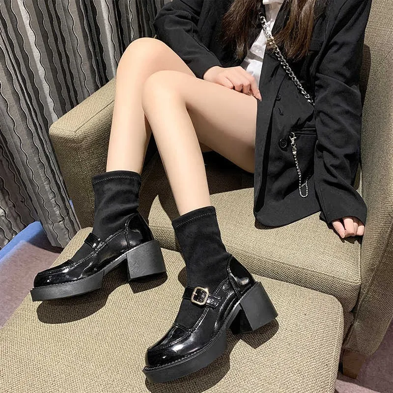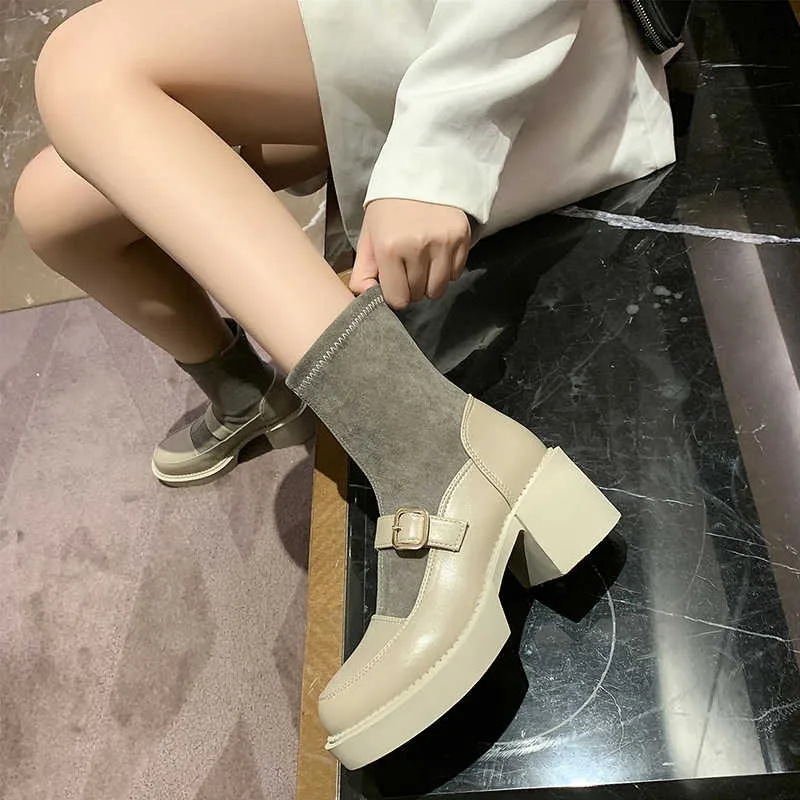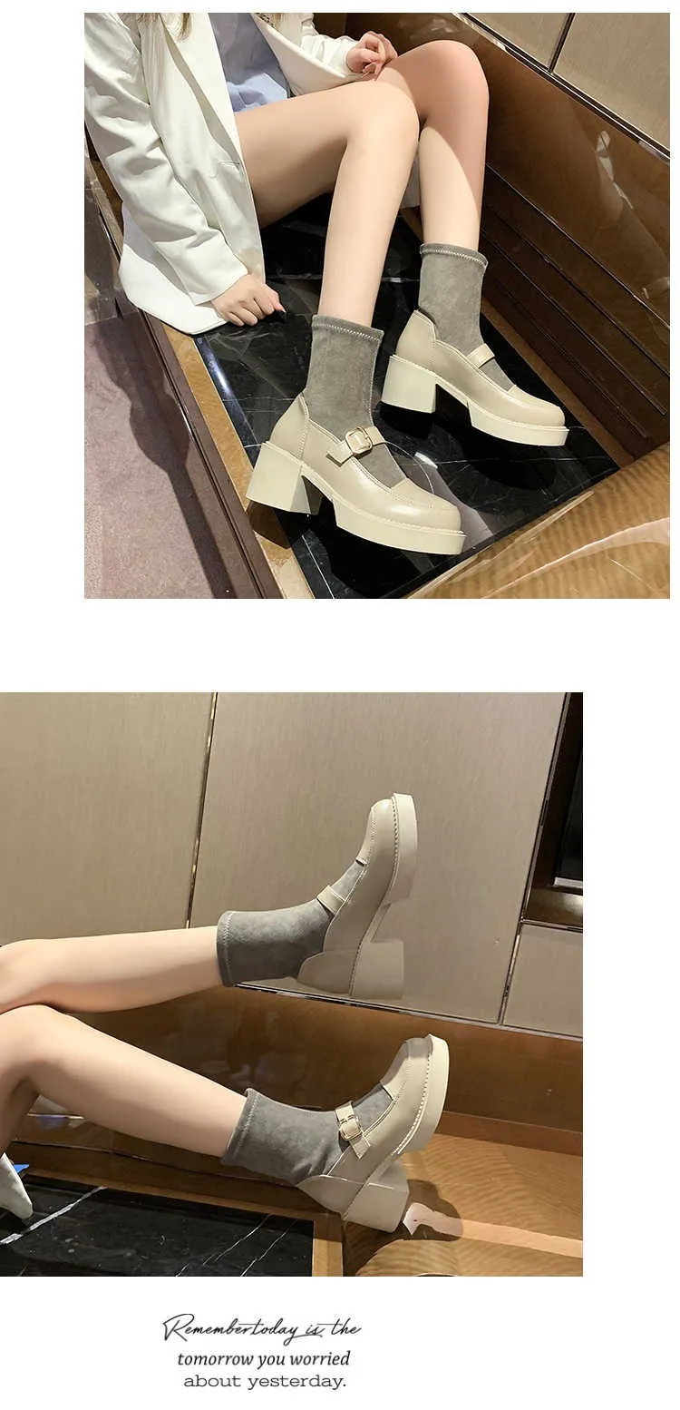 Новинка Осень-зима 2021, Женские Повседневные вязаные короткие сапоги на толстой подошве и высоком каблуке, женские сапоги