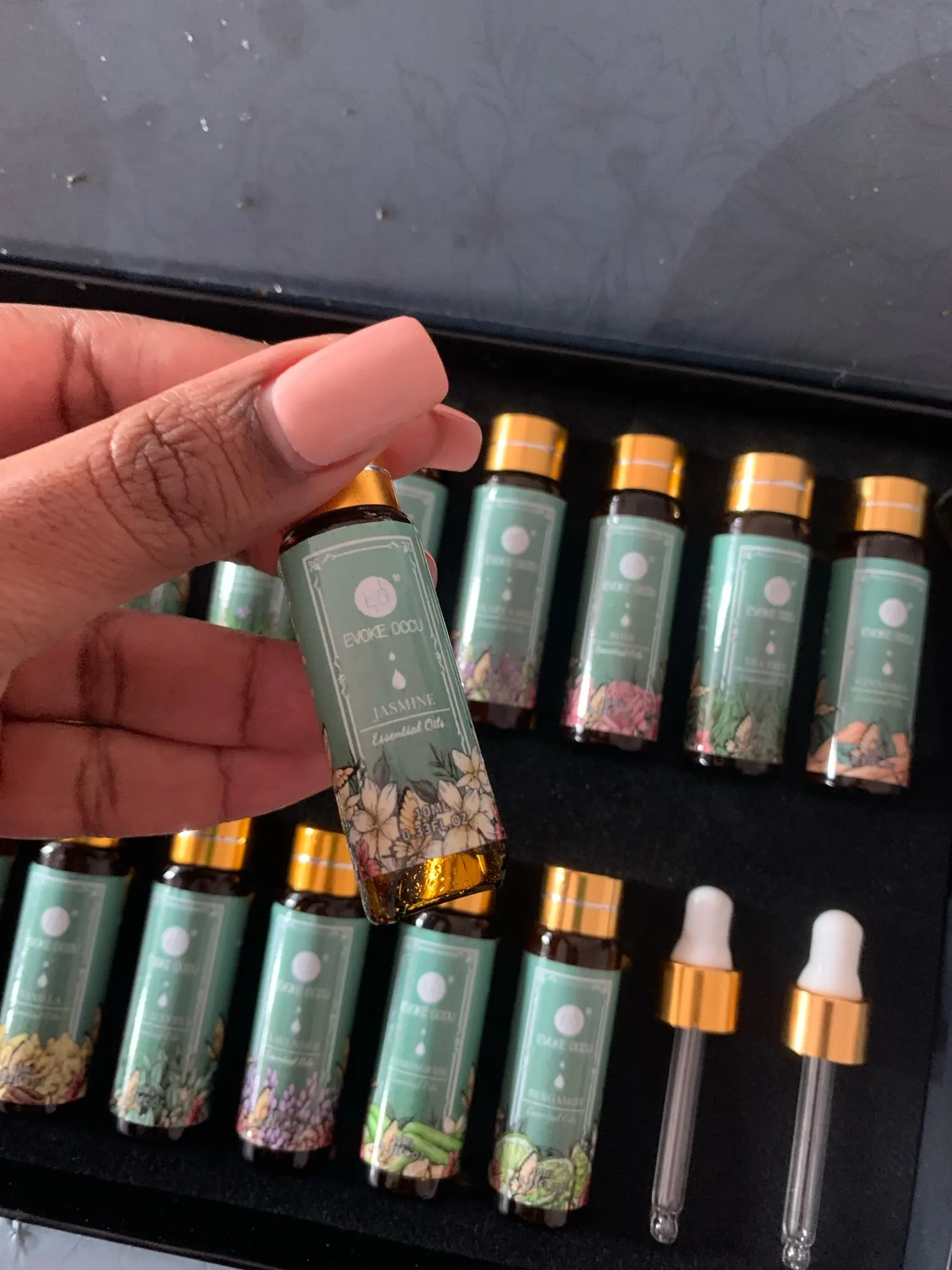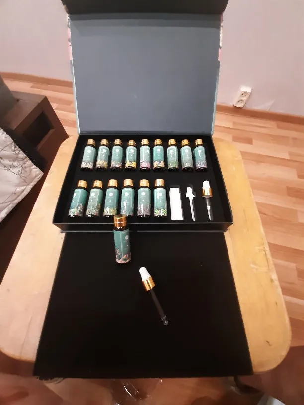 Посылка шла до Н.Новгорода 8 дней (курьером дл квартиры). Все пузырьки герметично закрыты, несмотря на мягкую упаковку картонная упаковка не повреждена. Ароматы насыщенные и приятные. В комплекте 2 пипетки для дозирования.