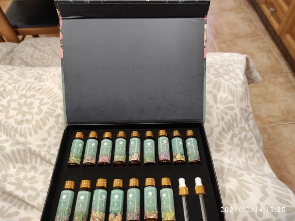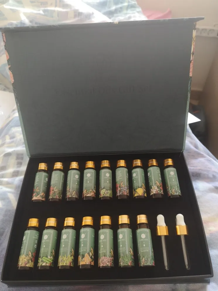 Быстрая доставка курьером. Очень красивая подарочная коробка на магнитах. Упакована в пленку, что исключает проблемы при доставке. Масла все очень приятно пахнут. Запахи похожи на натуральные. Использую с аромадиффузором. Товаром довольна. Рекомендую. Большое спасибо продавцу!
