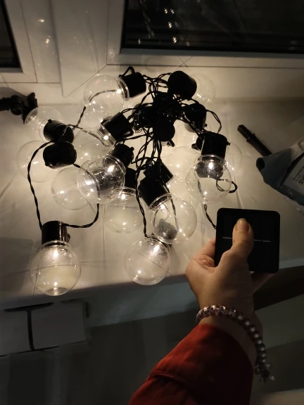 Светодиодный светильник на солнечной батарее:Строка включает 10 светодиодный или 20 светодиодный свет и съемной панели солнечных батарей с вкл/выкл переключатель расположен на спине. Светодиодный срок службы ламп 20000 часов и панели солнечных батарей рассчитан на 1000 заряда продолжительность жизни (может длиться около 2,5 лет). Прямой солнечный светильник лучше всего подходит для полной зарядки, хотя вы можете использовать непрямой светильник.