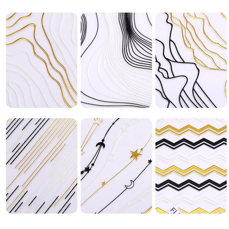 3D линия горячего тиснения для дизайна ногтей Наклейка простые черн...