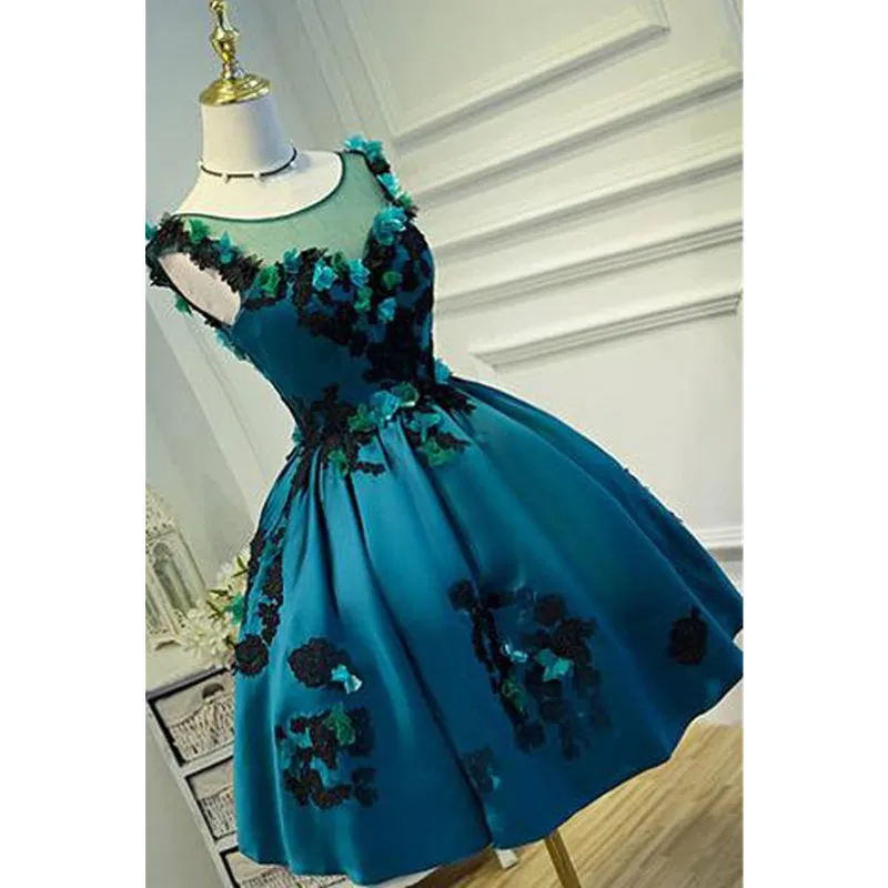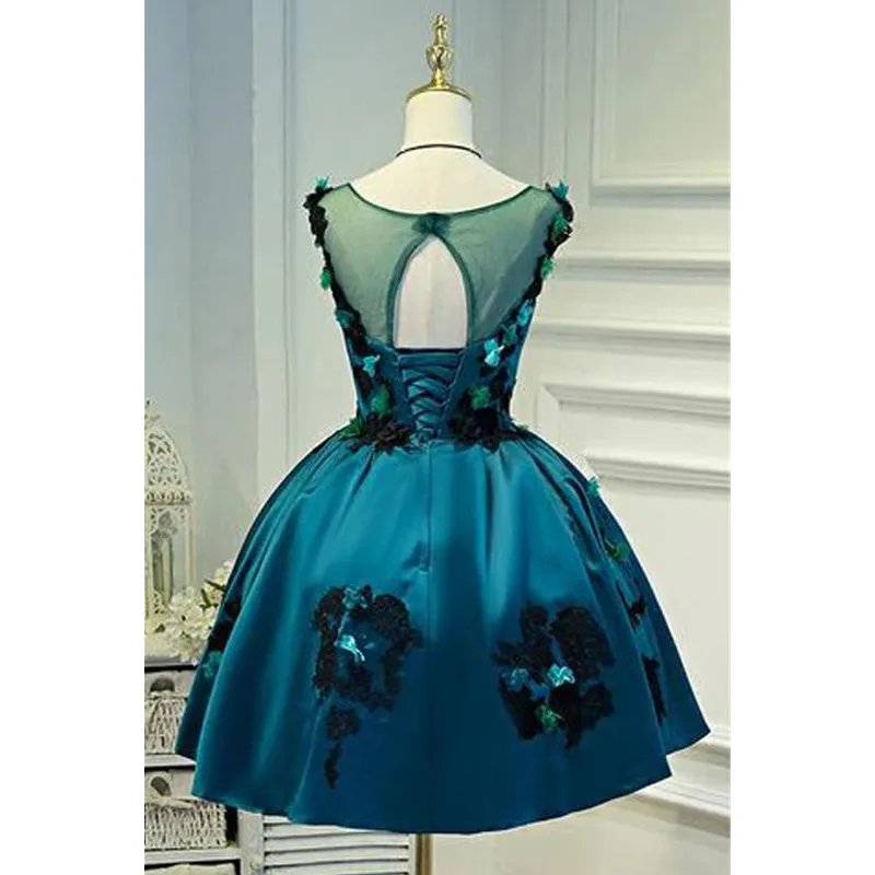 2020 атласные платья для выпускного вечера, черные кружевные женские платья, короткие 3D Цветы аппликация возвращения домой