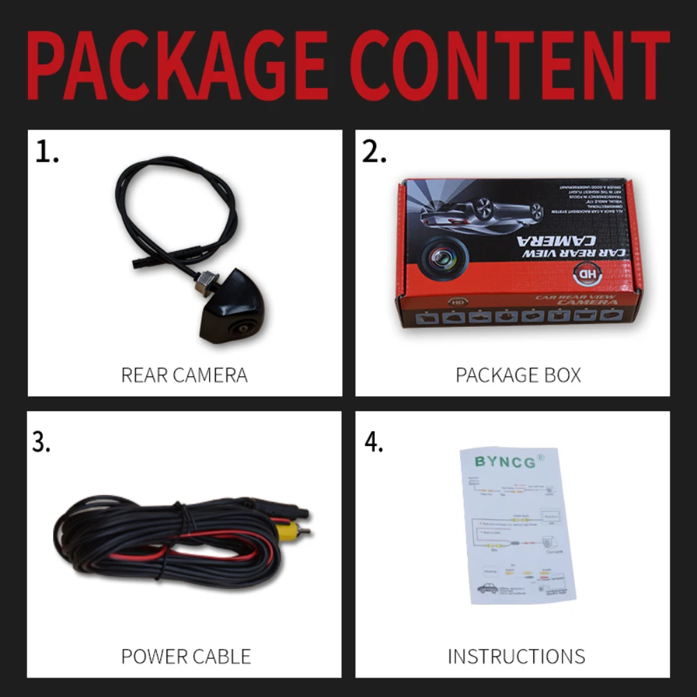 1. Камера траектории заднего вида2. Self-винт стук3. Видео кабель 6 м4. Руководство пользователя