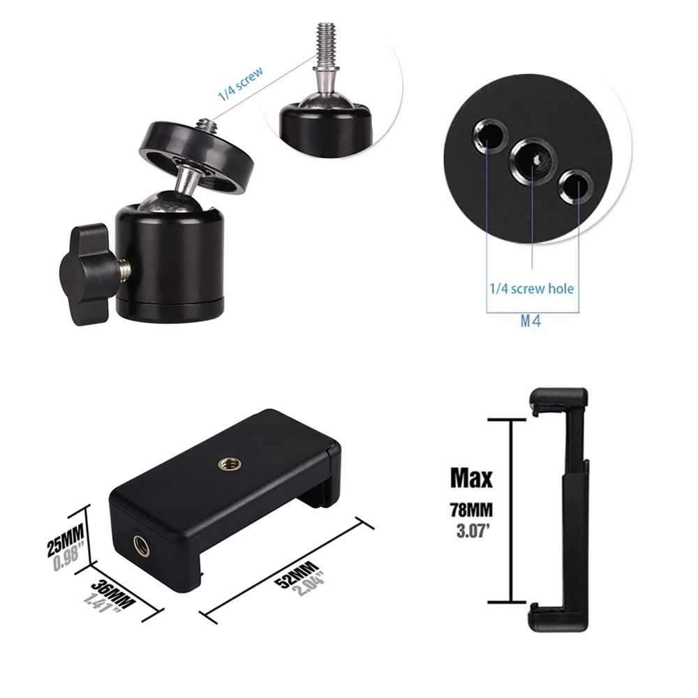 5. Универсальный держатель для телефона подходит для большинства смартфонов с чехлом или без него, совместим с iPhone X / 8 Plus / 8 / 7 Plus / 7 / 6S Plus / 6S, galaxy S9 / S9 Plus / Note 8 / S8 / S8 Plus / S7 Edge / J7, Google Pixel, Samsung, Huawei Mate 20 pro. С универсальным винтом 1/4 дюйма, подходит для цифровых камер, DSLR, SLR, спортивных камер, GoPro, веб-камер, компактных камер.
