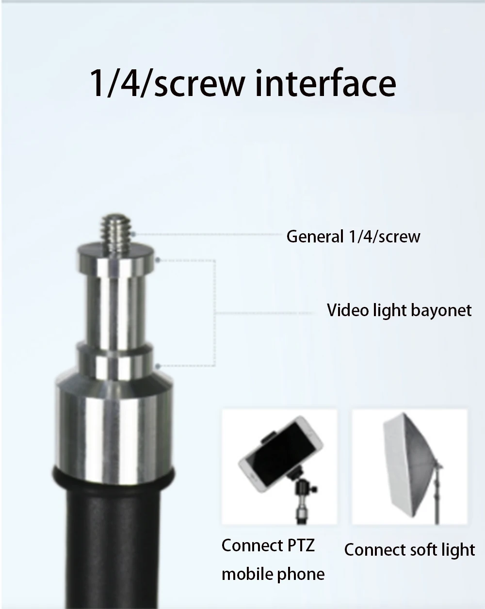 4. Несколько способов, по горизонтали и вертикали, чтобы сделать селфи более увлекательными и живое видео более свободным и удобным. Вращающийся на 360 ° Сферический разъем 1/4 дюйма для регулировки нескольких углов съемки для фиксации телефона по вертикали и горизонтали. 360 ° камера с панорамированием позволяет легко наносить и точить для регулировки диапазона снимков, которые вы можете сделать.