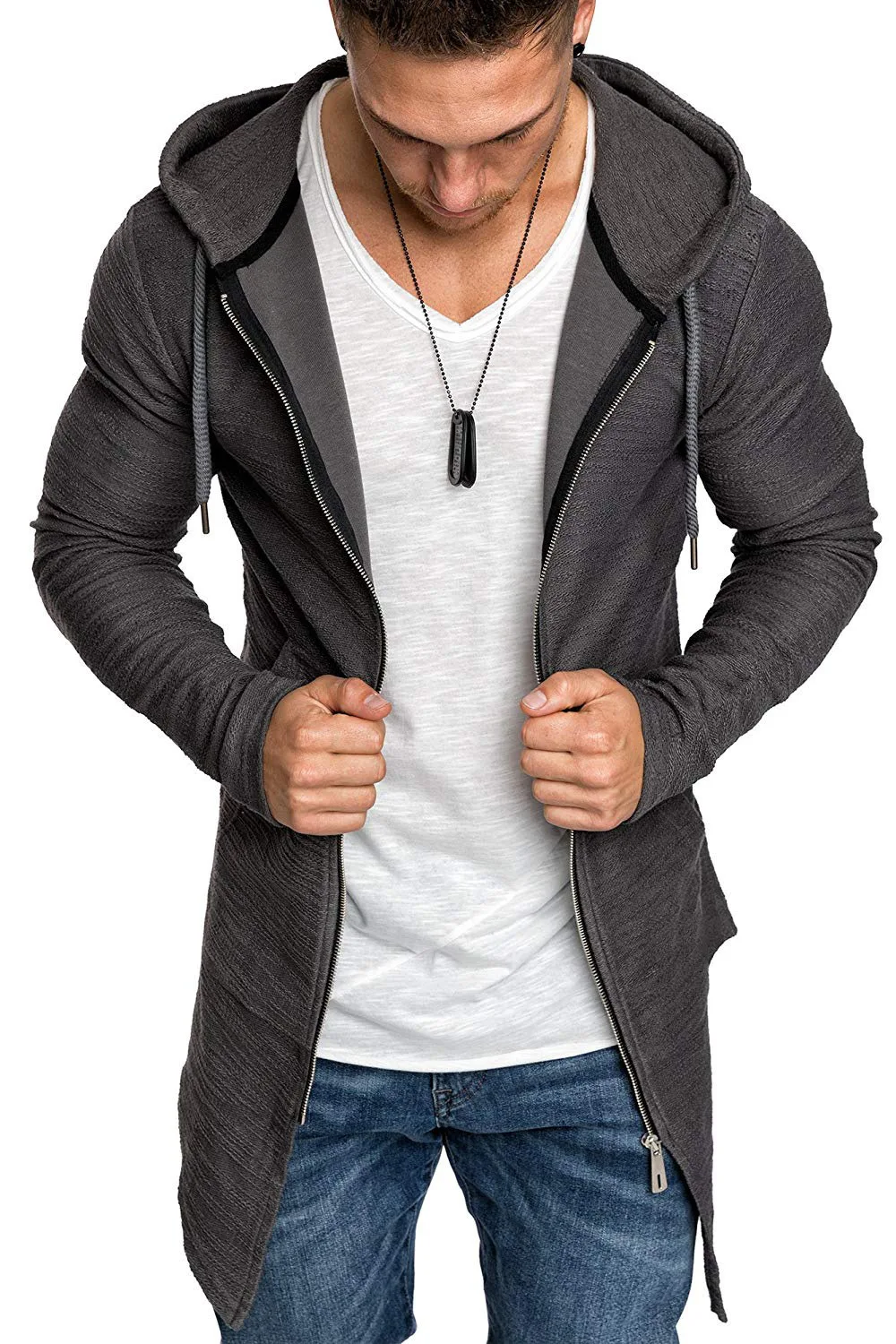 Осень-зима 2021, Мужская ветровка, Модный облегающий свитер средней длины с ласточкиным хвостом, мужской кардиган, толстовка на молнии для мужчин