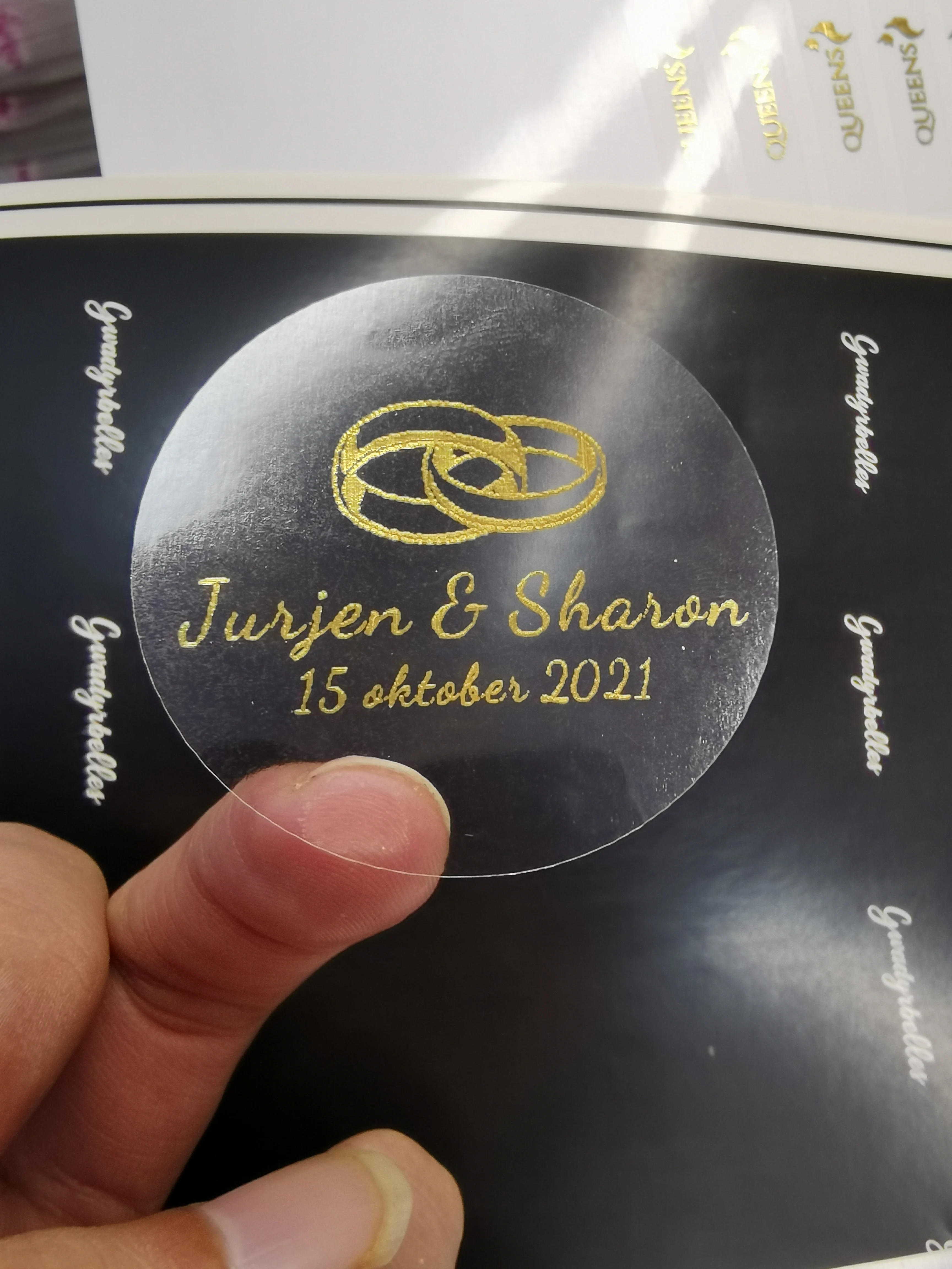 Индивидуальные круглые и другие формы 3-8 см наклейки с логотипом, прозрачная Золотая фольга, все размеры, используется для упаковки, ярлыки коммерческих компаний, 100