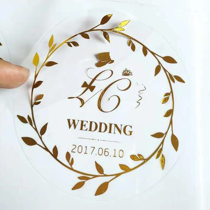Наклейки круглые и других форм на заказ, прозрачная Золотая фольга, черный, Персонализируйте свой собственный логотип, используется для свадеб, подарочных коробок