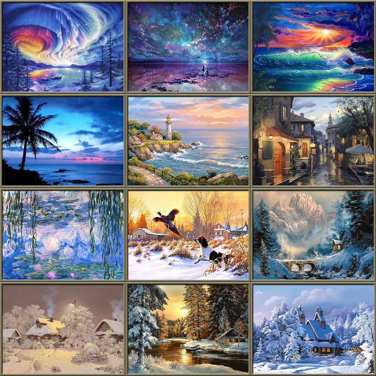 Diy алмазная живопись пейзаж живопись 5d полный набор алмазной выши...