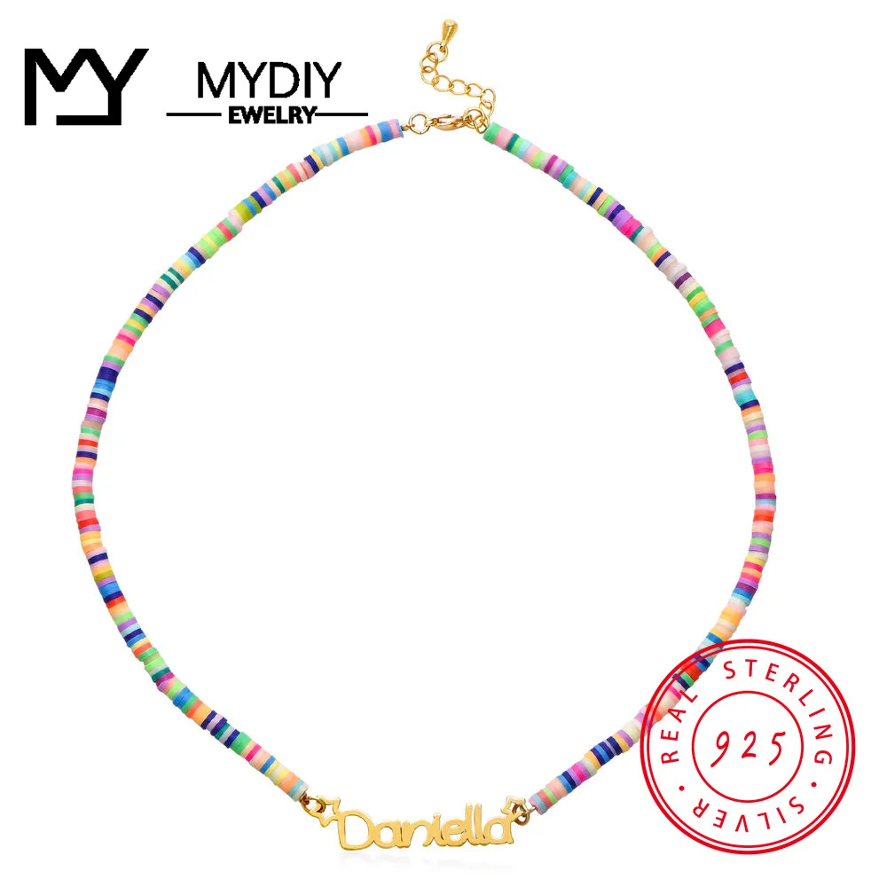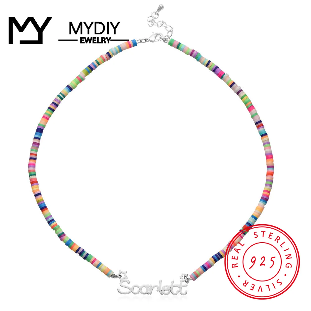 Ожерелье ручной работы из серебра 925 пробы с бусинами и именем Fimo, Радужное детское ожерелье, красочные ожерелья для девочки, рождественский подарок