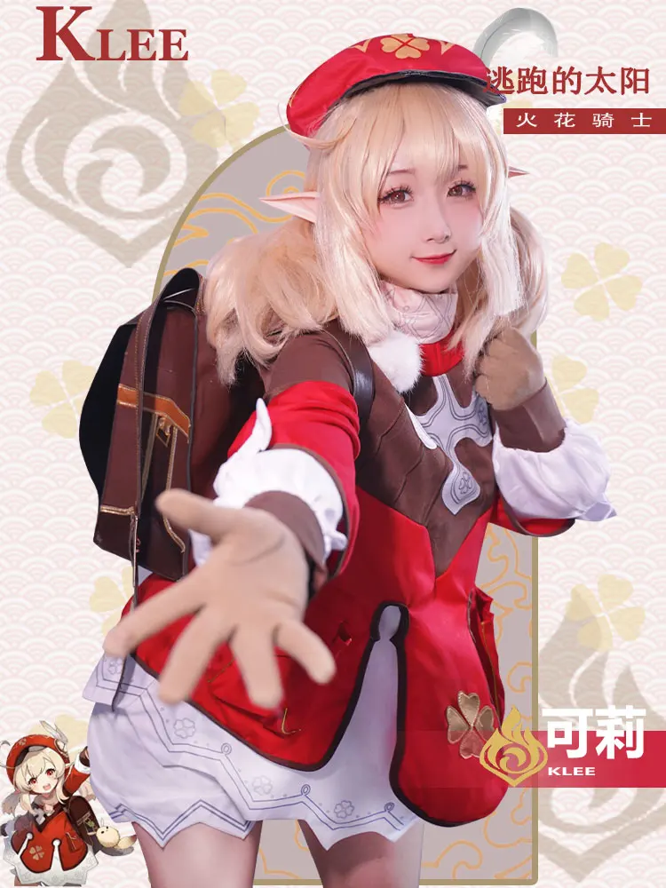 Женский костюм для косплея Game Genshin Impact Klee, парик, обувь, одежда для вечеринки, униформа для Хэллоуина, карнавальные костюмы, аксессуары