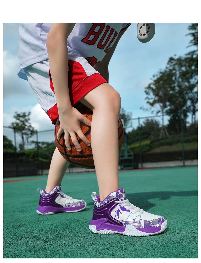 Брендовые высококачественные детские кроссовки для мальчиков, Баскетбольная обувь на толстой нескользящей подошве, дышащая детская спортивная обувь, тренировочные ботинки для мальчиков