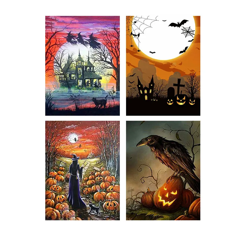 QIQING алмазная живопись Хэллоуин Ведьма и Ворона, алмазная вышивка, полноразмернаякруглая алмазная живопись, вышивка крестиком, домашний декор
