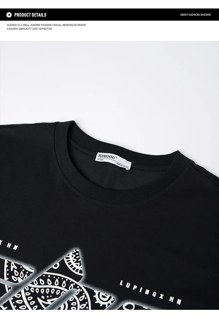 Мужская свободная футболка KUEGOU, черная футболка с коротким рукав...